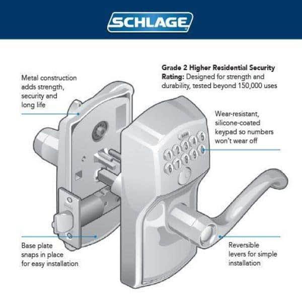 Schlage Fe595-ply-626-ela Satin Chrome Plymouth Elan Keypad Entry with Flex Lock