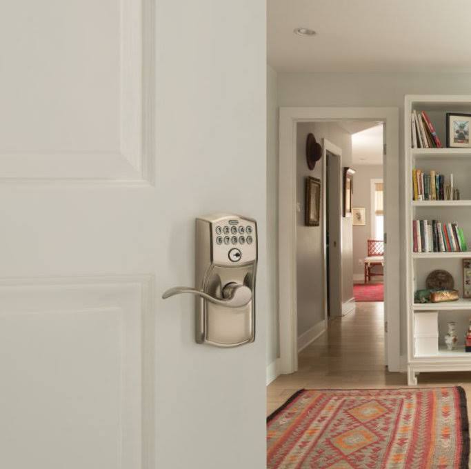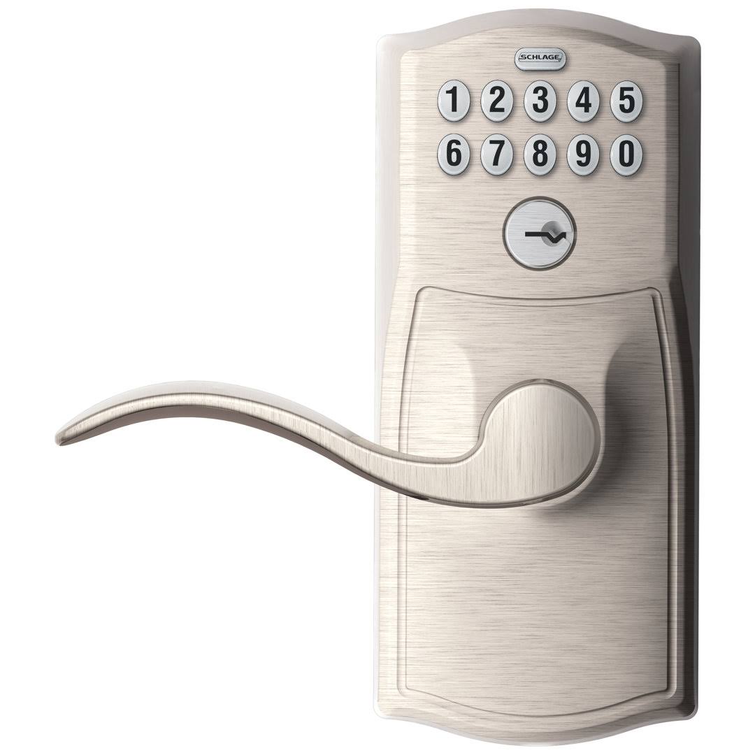 Schlage Camelot Design Keypad Entry with Accent Levers, Satin Nickel