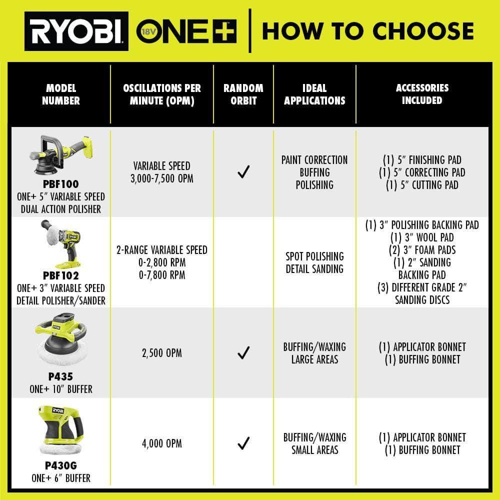 Ryobi One+ 18V Cordless 5 in. Variable Speed Dual Action Polisher (Tool Only) with Foam Dual Action Polisher Pad Set (3-Piece)