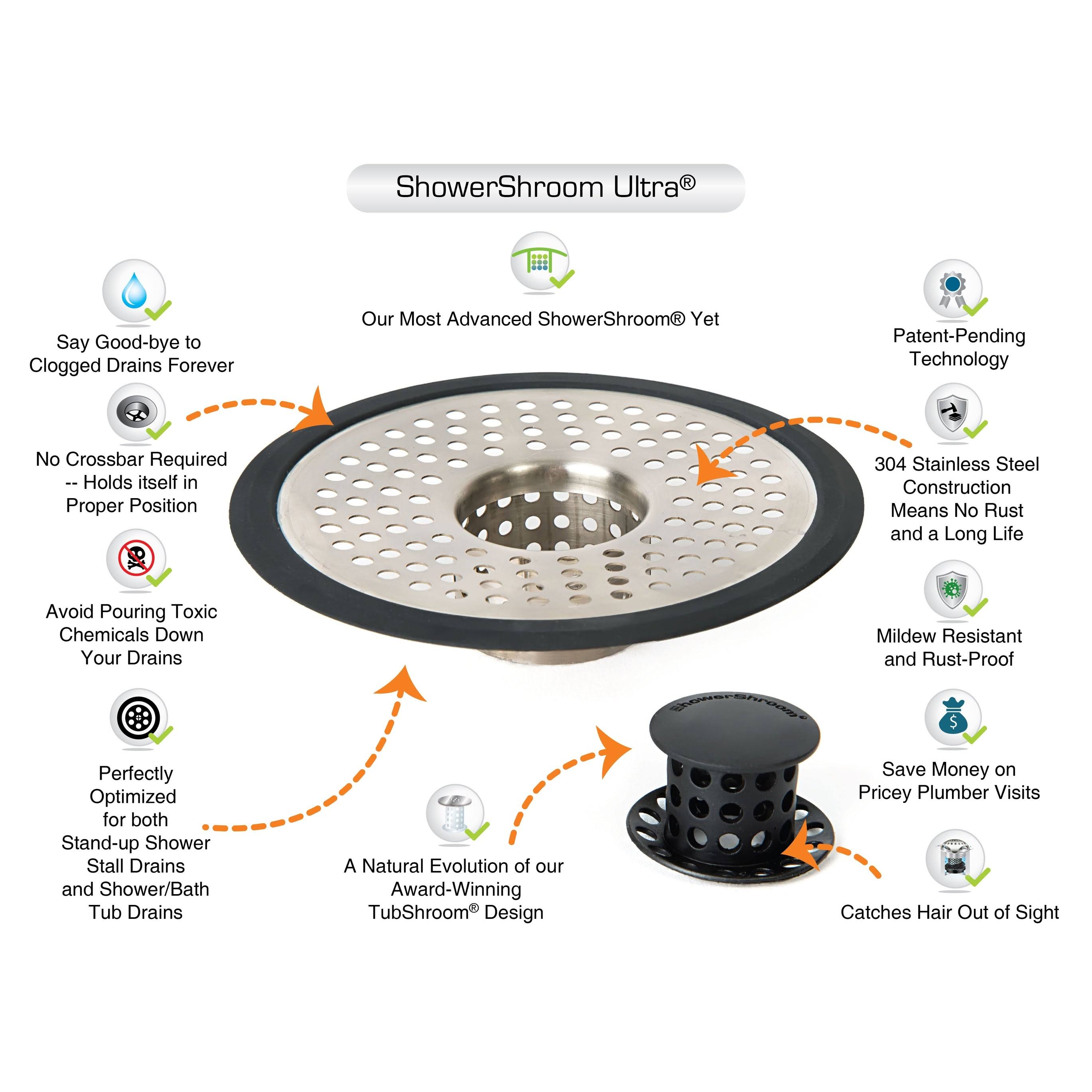 ShowerShroom SHSULT755 Ultra Revolutionary Shower Hair Catcher Drain Protector, Stainless, Size: 4 inch