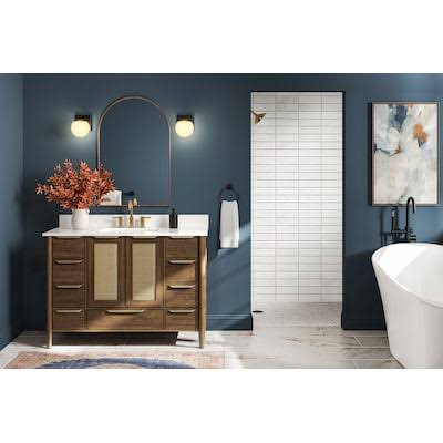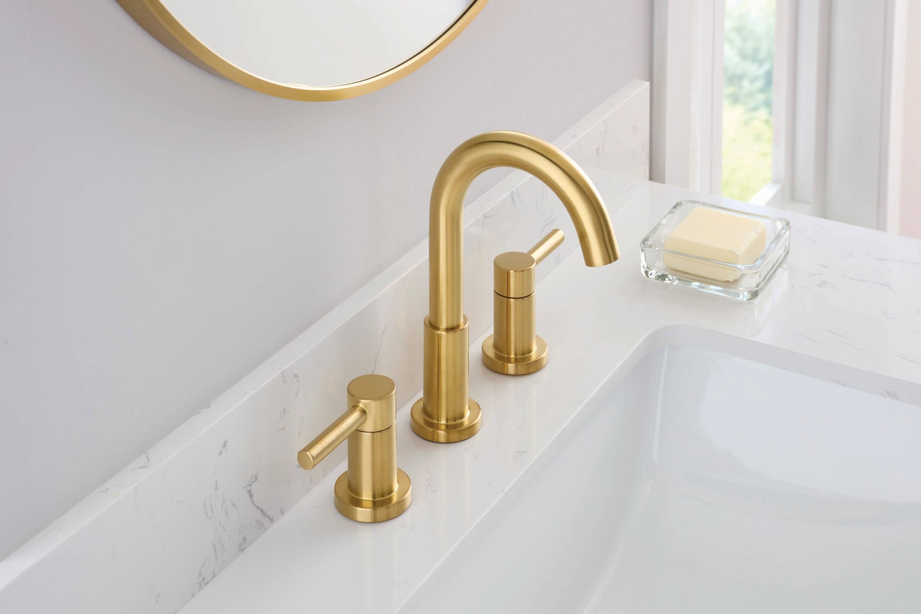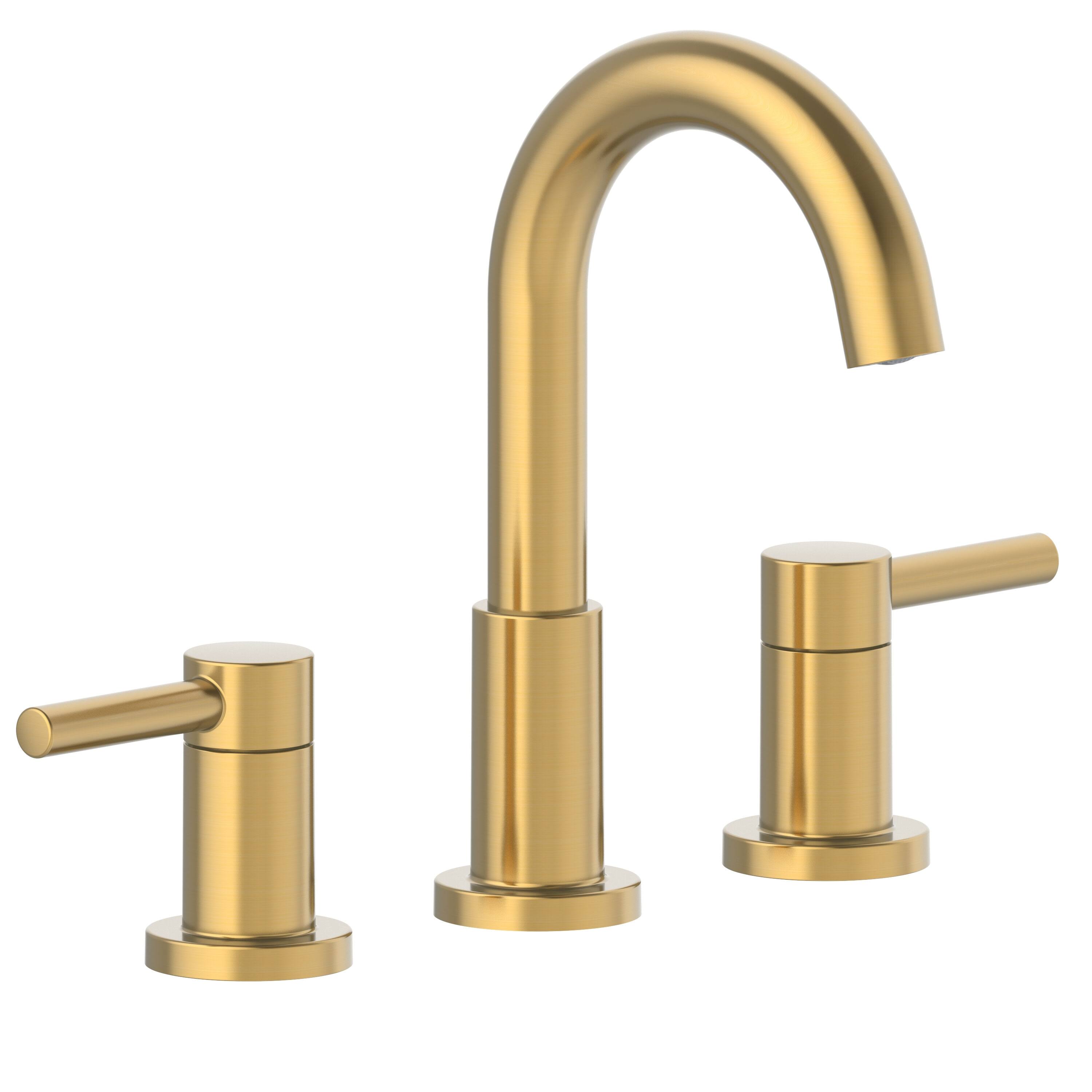 Allen + Roth Brushed Gold 2-Handle Widespread WaterSense Mid-Arc Bathroom Sink Faucet with Drain