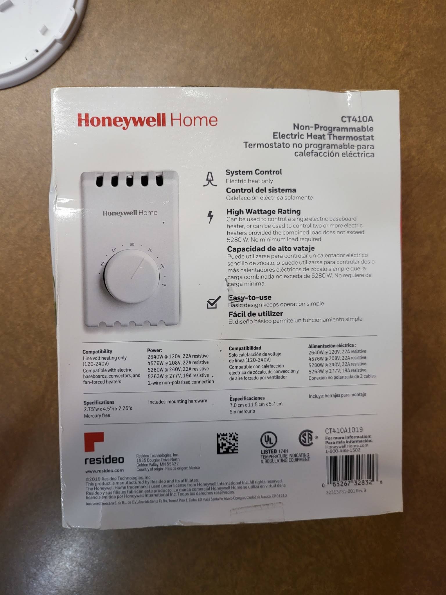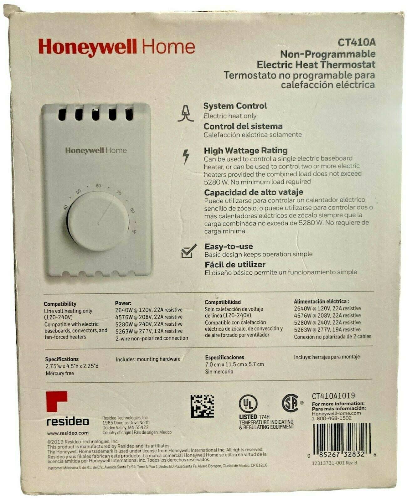 Honeywell Ct410a Mechanical Non-Programmable Electric Heat Thermostat