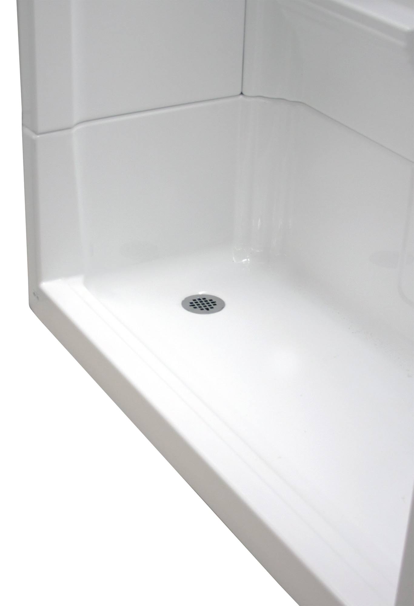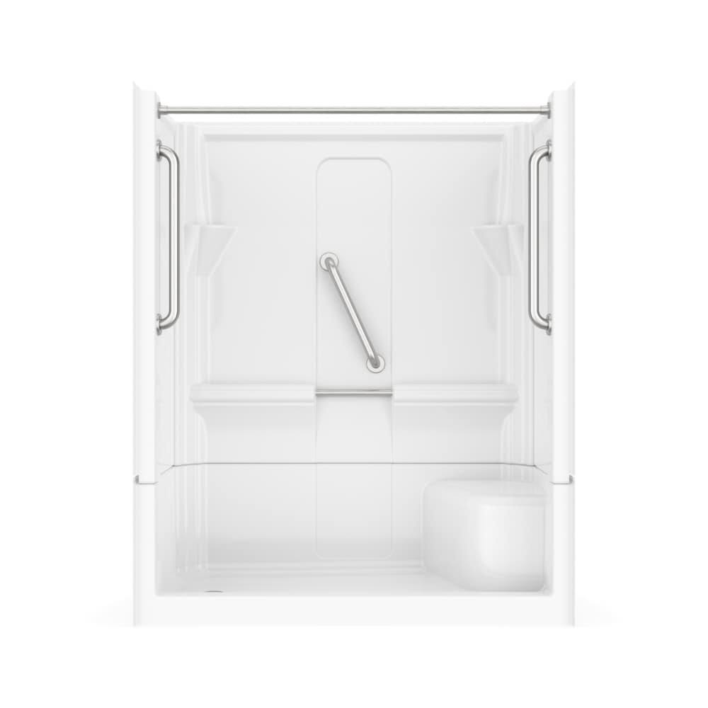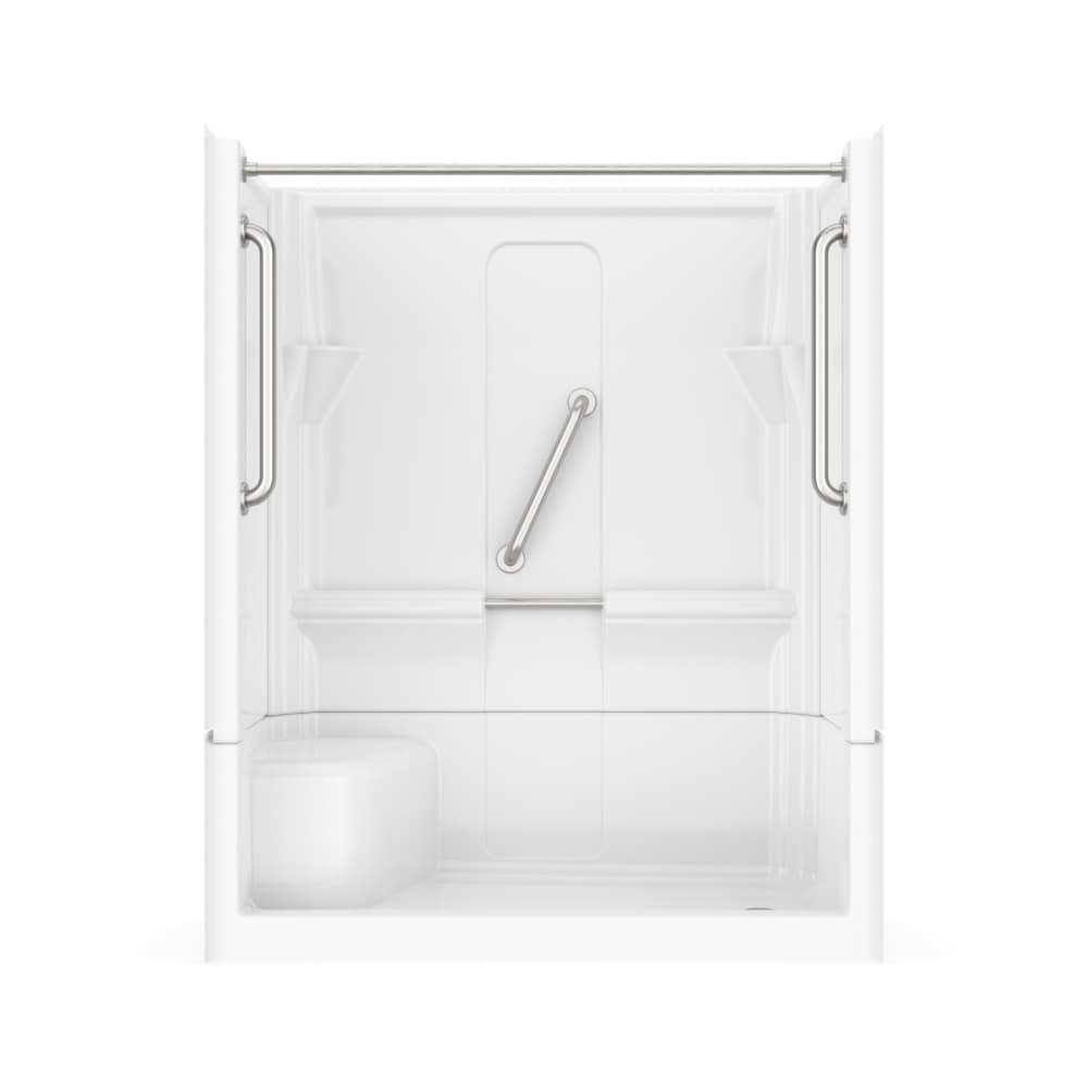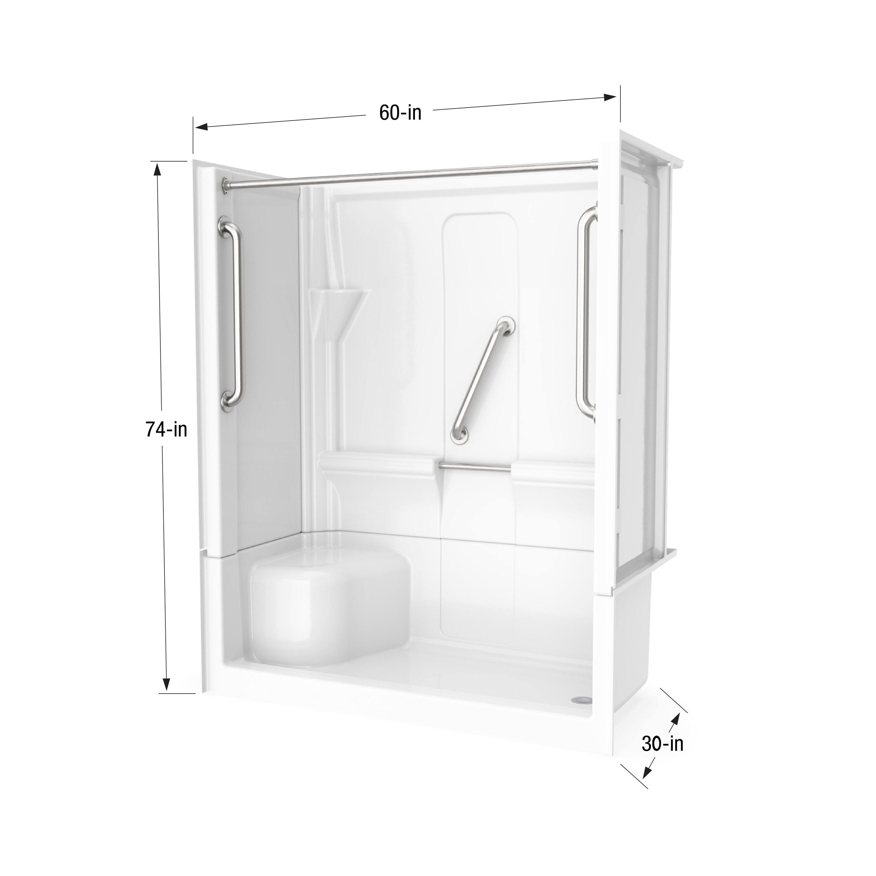 Laurel Mountain Almedia Low Threshold White 4-Piece 30-in x 60-in x 74-in Base/Wall Alcove Shower Kit with Integrated Seat (Right Drain) Drain