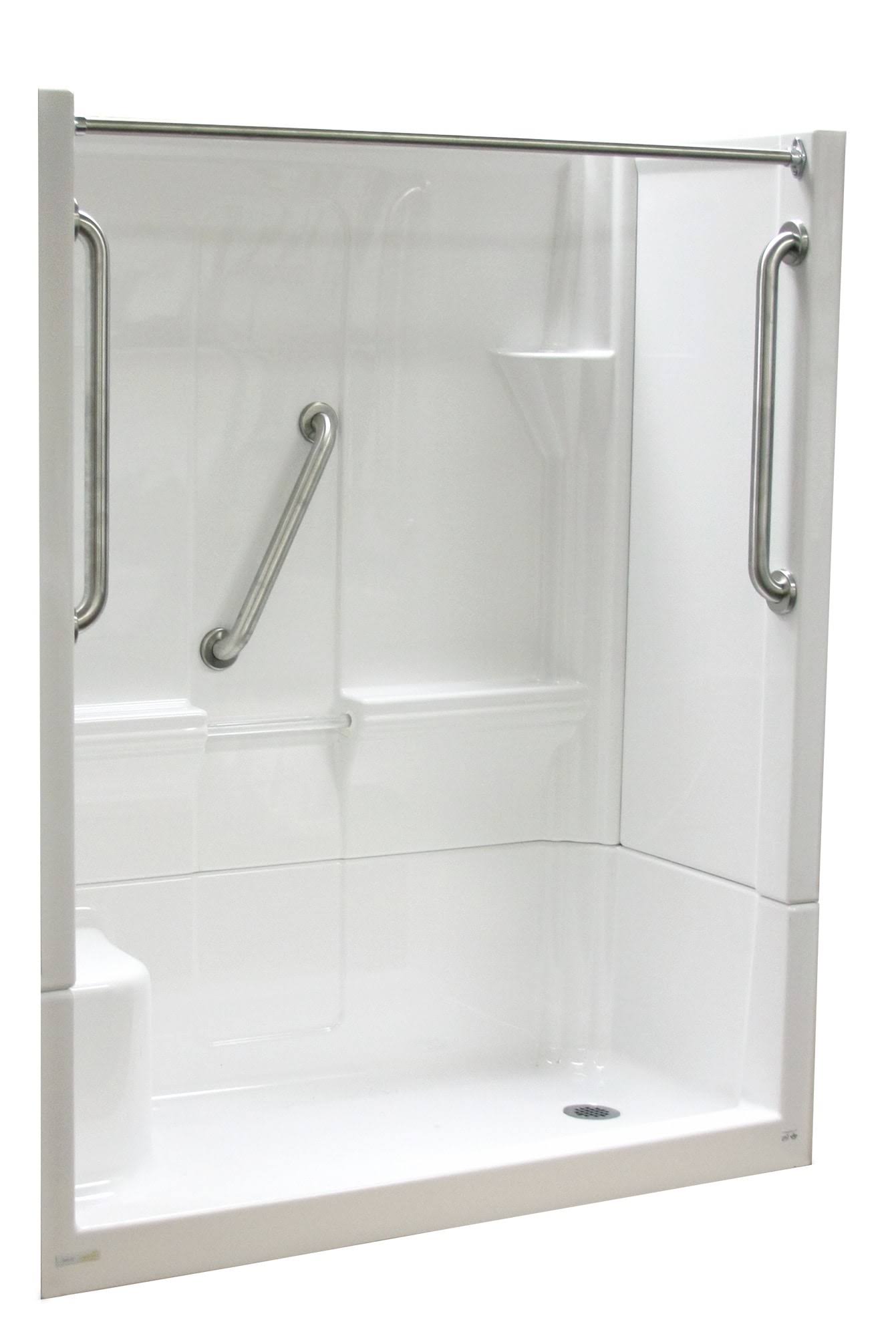 Laurel Mountain Almedia Low Threshold White 4-Piece 30-in x 60-in x 74-in Base/Wall Alcove Shower Kit with Integrated Seat (Left Drain) Drain Included