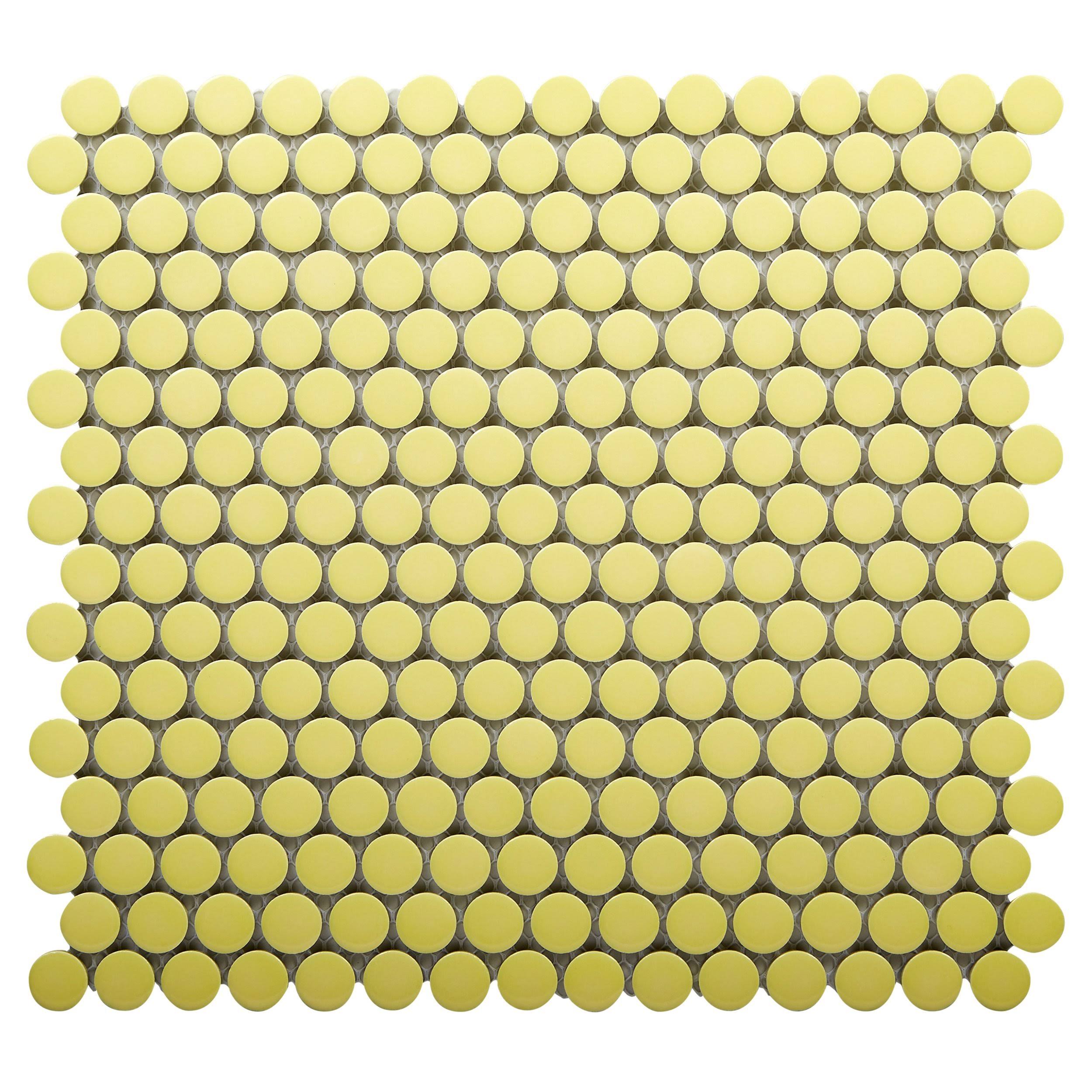 Festival | Sunflower II Porcelain Penny Mosaic, 12 x 12, Gold/Yellow, 1/4 inch Thick- Floor & Decor