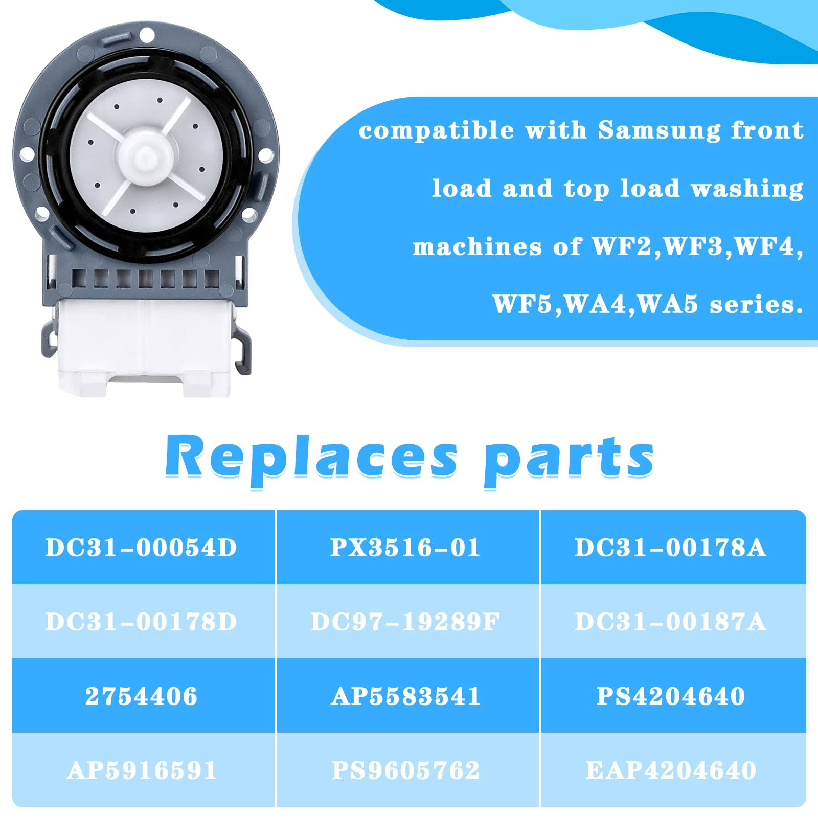 TOMOON New Washer Drain Pump DC31-00054D PX3516-01 DC31-00187A for Samsung Washing Machine Models in The WA4, WA5, WF2, WF3, WF4, and WF5 Series