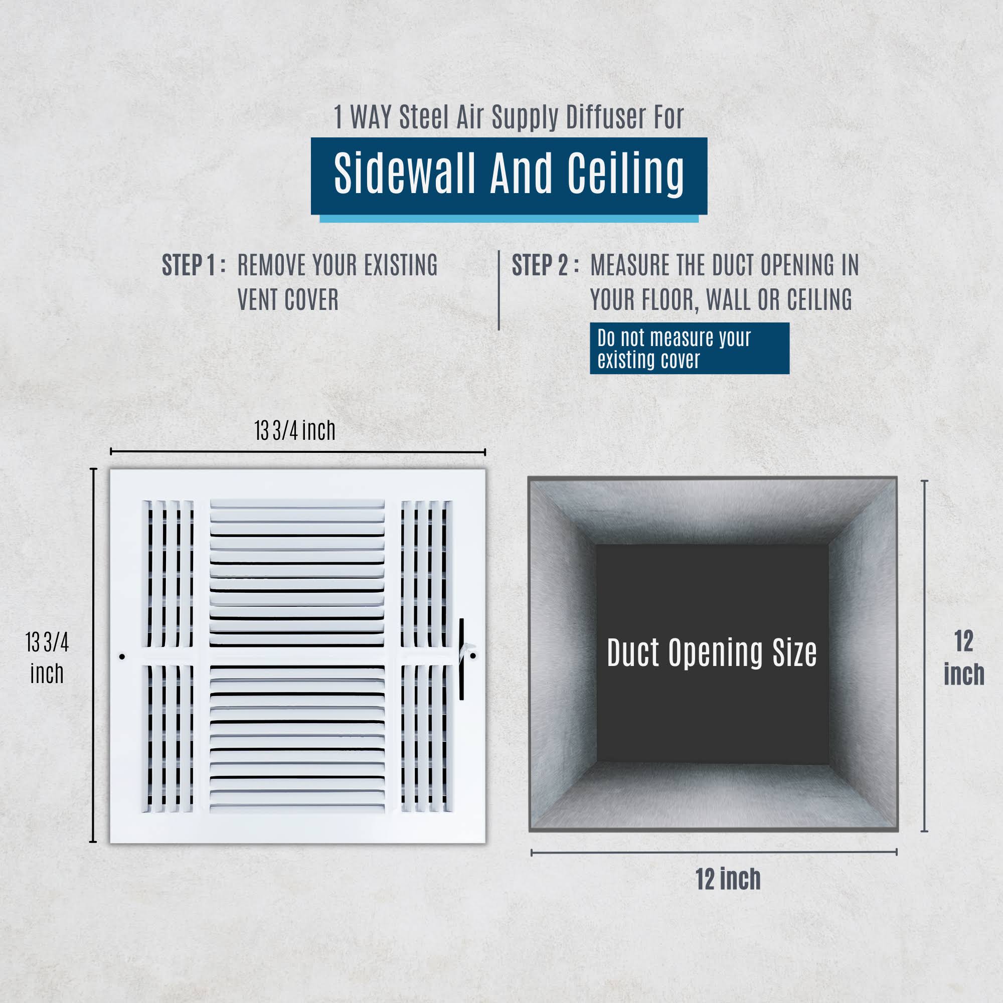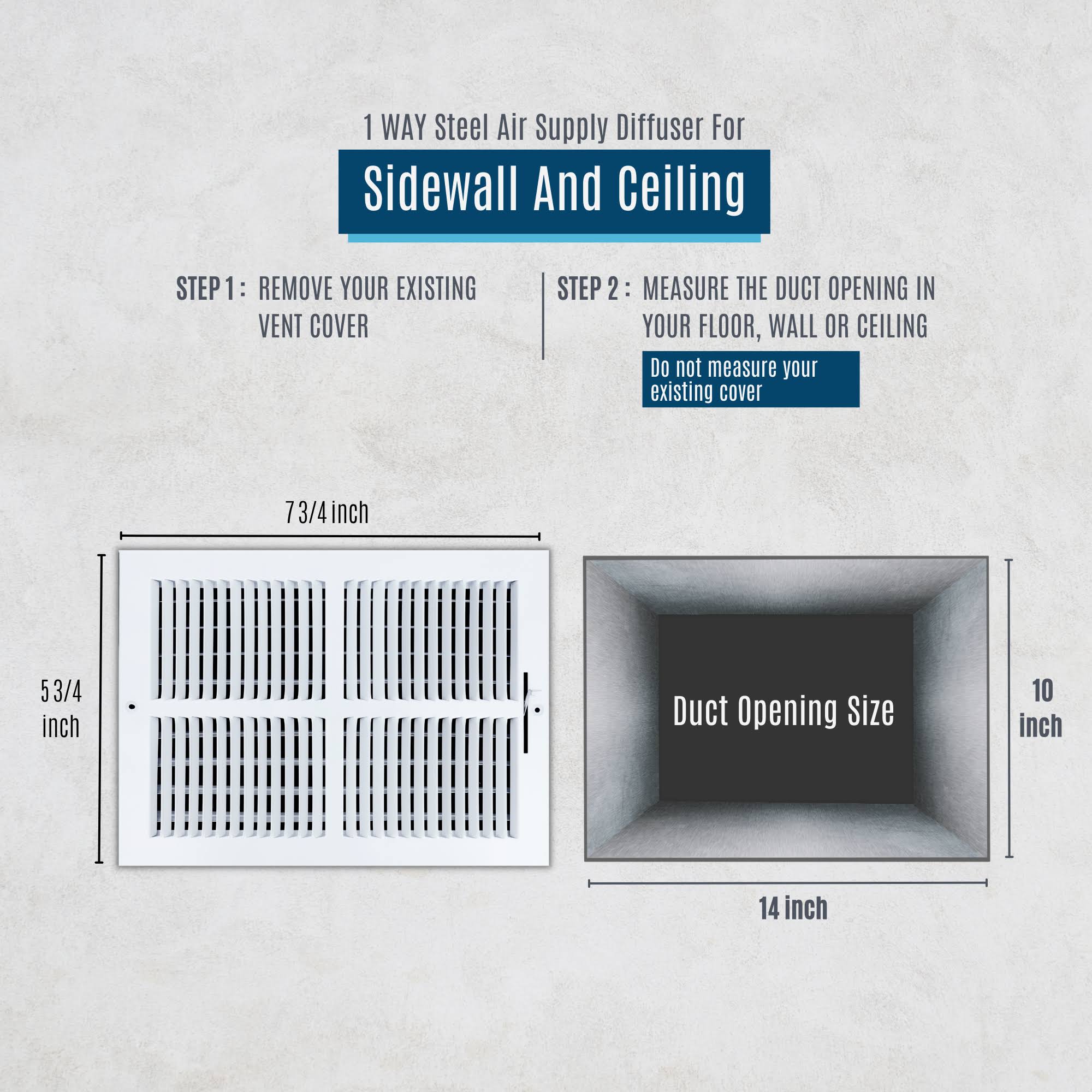 Handua 14 x 10 Duct Opening | 2 Way Steel Air Supply Diffuser for Sidewall and Ceiling