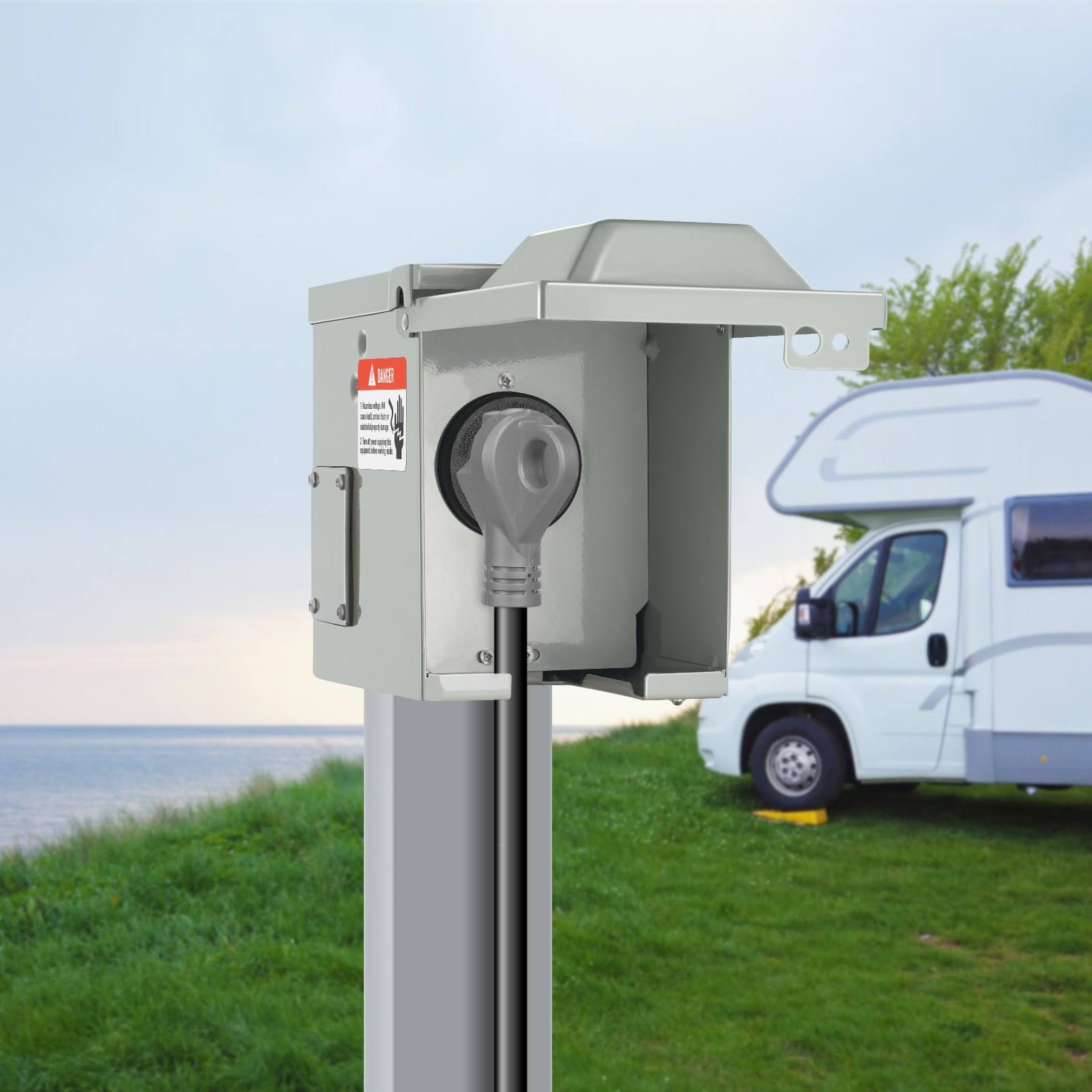 VEVOR 30 Amp RV Power Outlet Box 125/250 Volt Enclosed Lockable Outdoor RV Receptacle Box NEMA TT-30R Weatherproof Electrical Panel for RV Camper