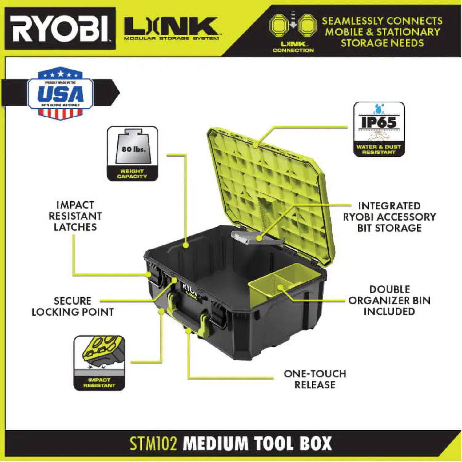 Ryobi Link Rolling Tool Box with Medium Tool Box, Standard Tool Box, and Tool Crate