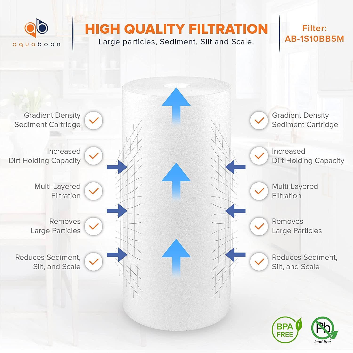 Aquaboon 6-Pack of 5 Micron 10"x4.5" Sediment Water Filter Whole House Big Blue
