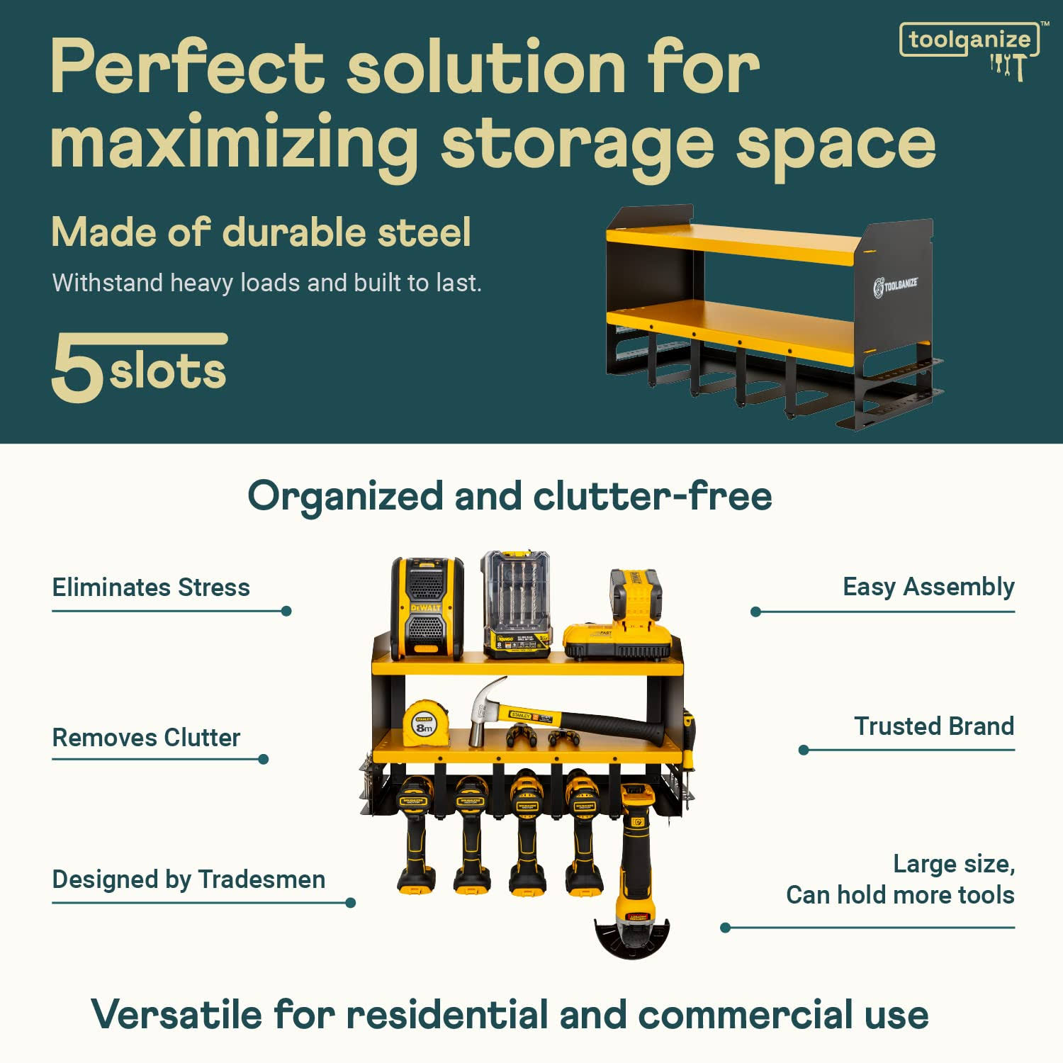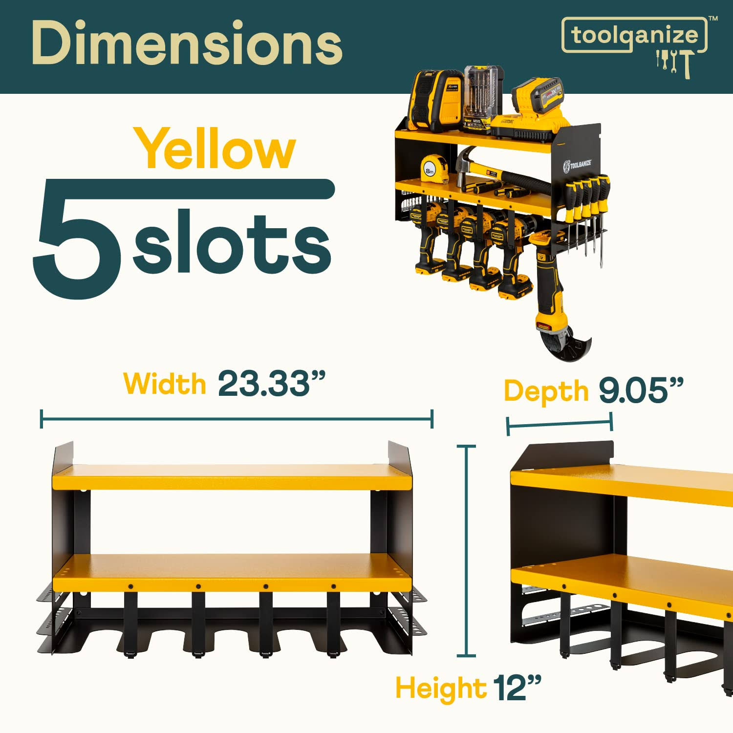Toolganize Power Tool Organizer- Wall Mount- Premium Garage Utility Shelf & Organization- Heavy Duty Metal- Drill Holder- Cordless Tool Storage