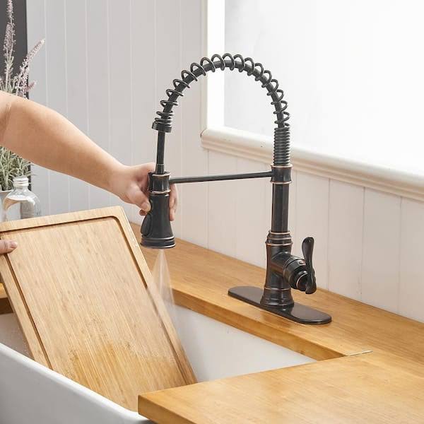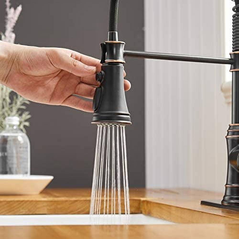 BWE Single-Handle Pull-Down Sprayer 3 Spray High Arc Kitchen Faucet with Deck Plate in Oil Rubbed Bronze