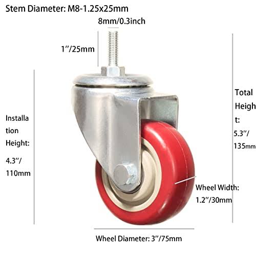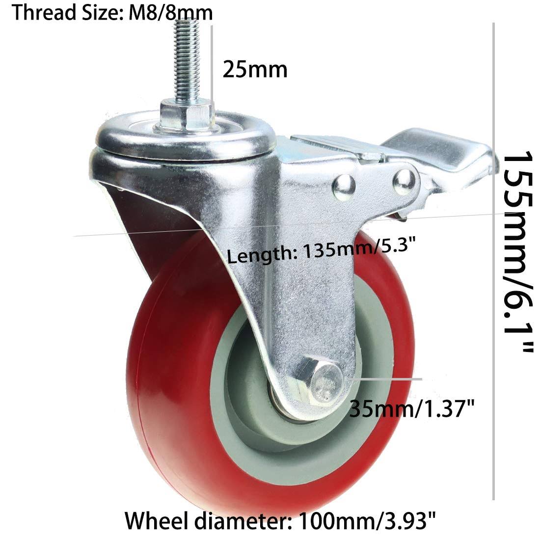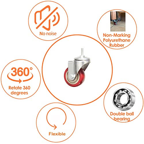 AOZEL Heavy Duty Stem Caster Wheels Double Bearing PU Castors No Noise Swivel Casters AZL0014