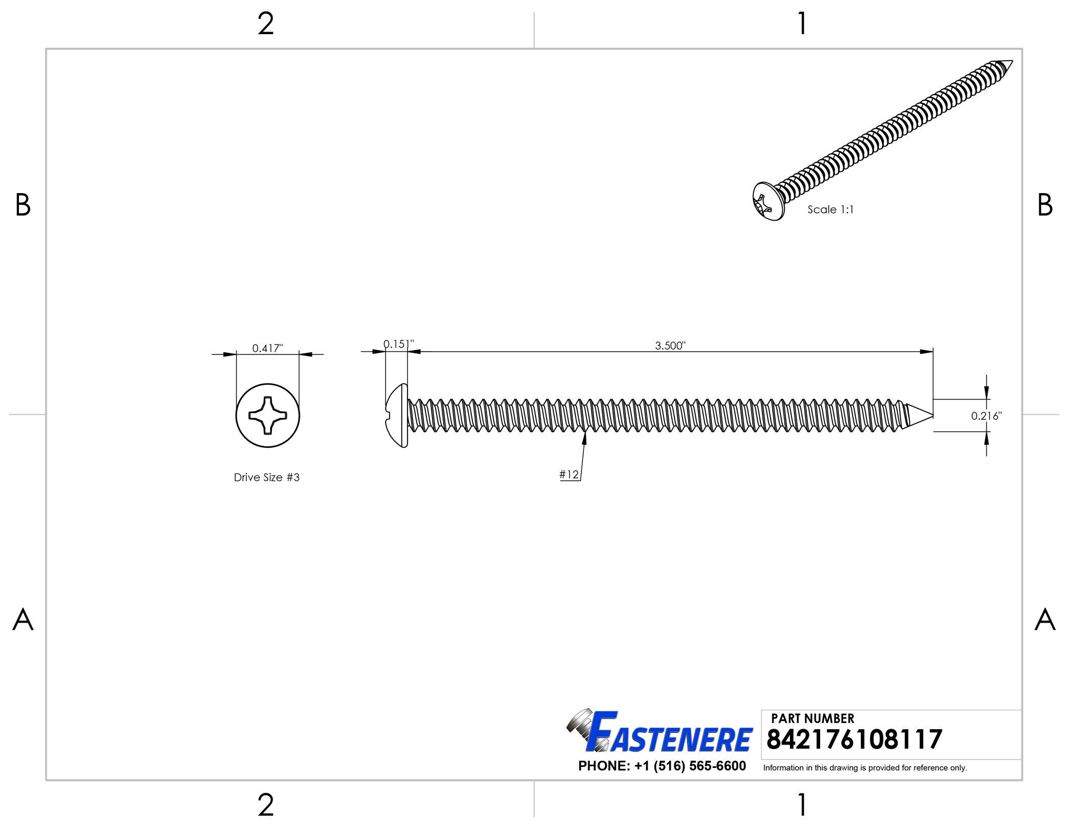 Fastenere #12 x 3-1/2" Phillips Pan Head Sheet Metal Screws Stainless Steel 18-8 Qty 25
