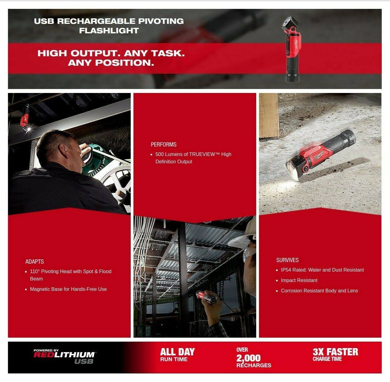 Milwaukee 2113-21 USB 500 Lumens Rechargeable Pivoting Flashlight