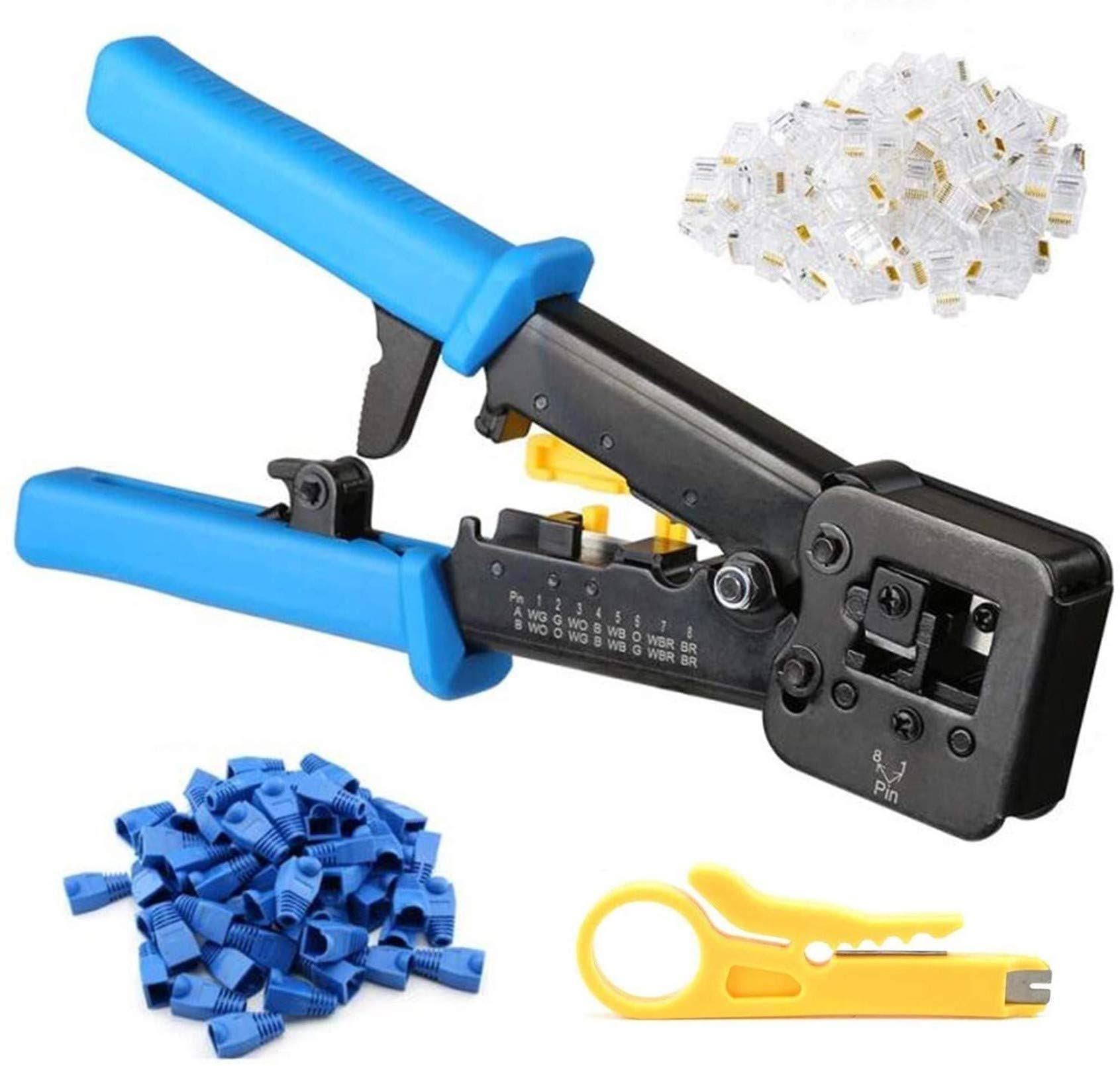 Gaobige RJ45 Crimping Tool for Cat6 Cat5e Cat5, Sturdy Crimper for RJ45 rj12/11 Pass-Through Connectors with 50pcs RJ45 Cat5e Pass-Through