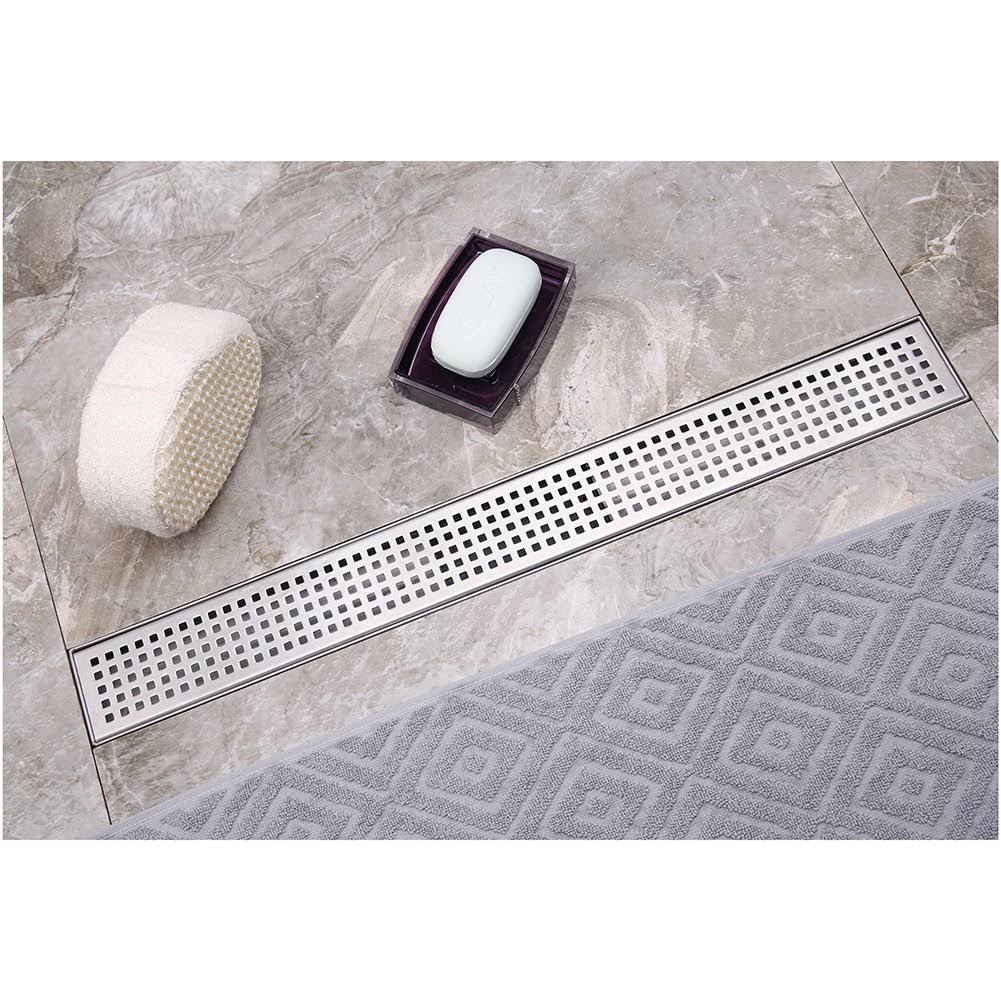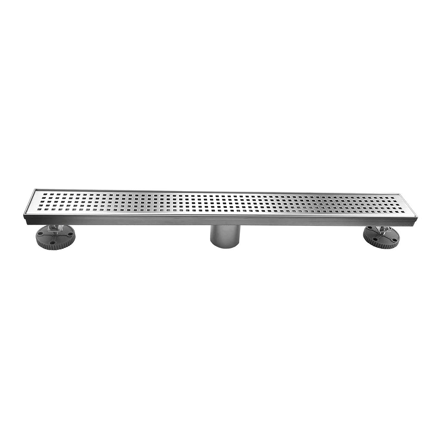 Neodrain 24-Inch Linear Shower Drain with Quadrato Pattern Grate,Professional Brushed 304 Stainless Steel Rectangle Shower Floor