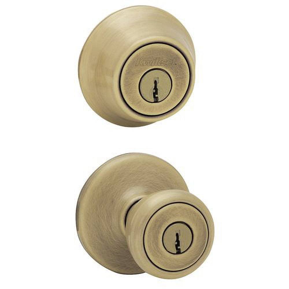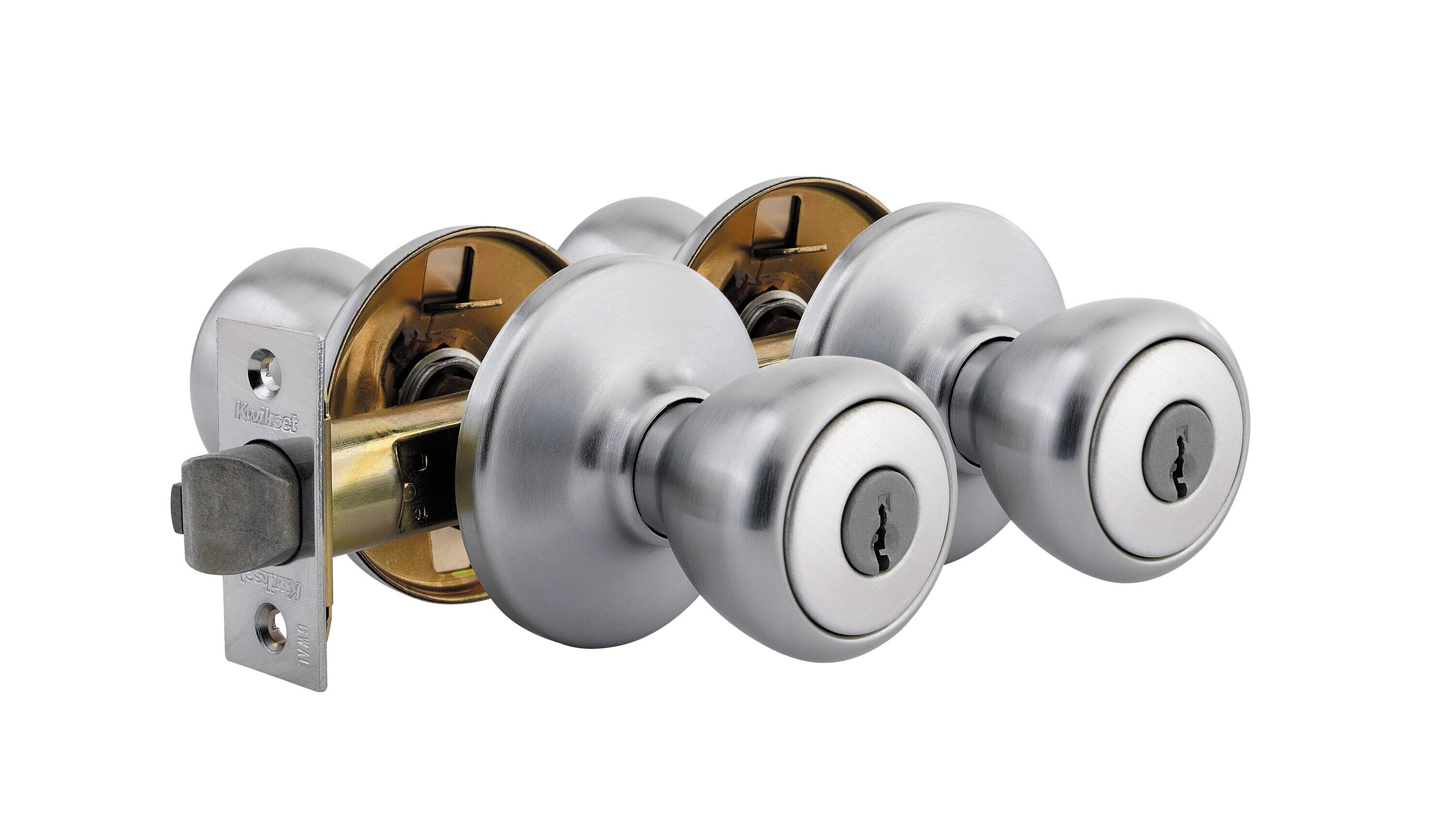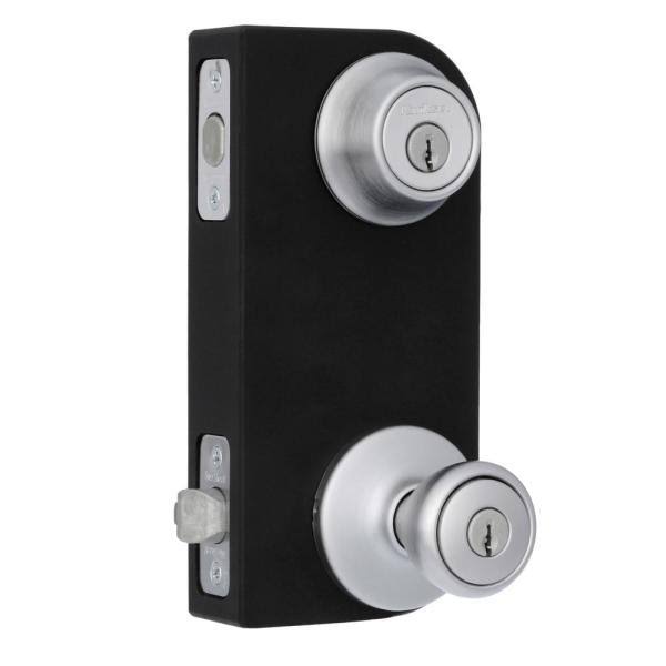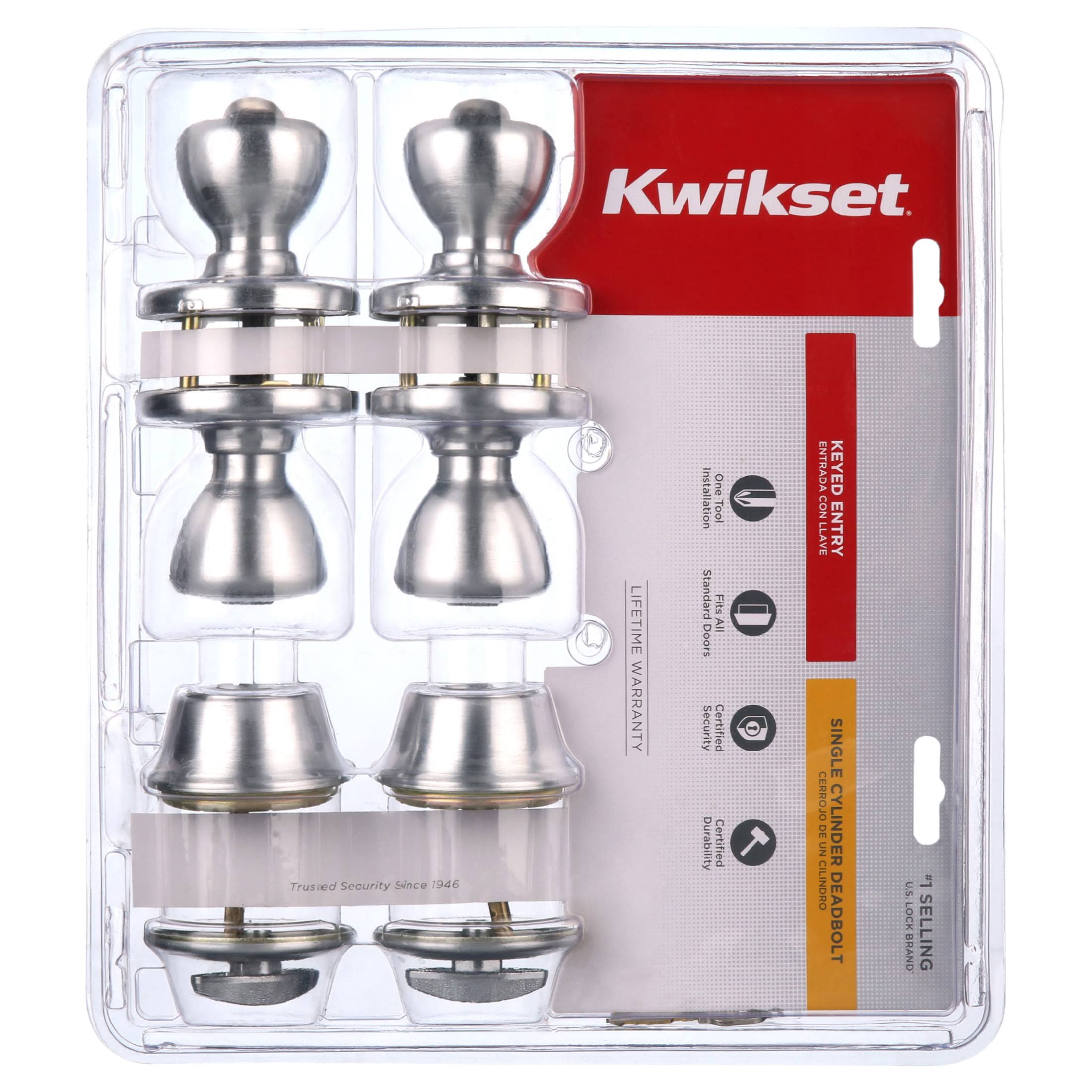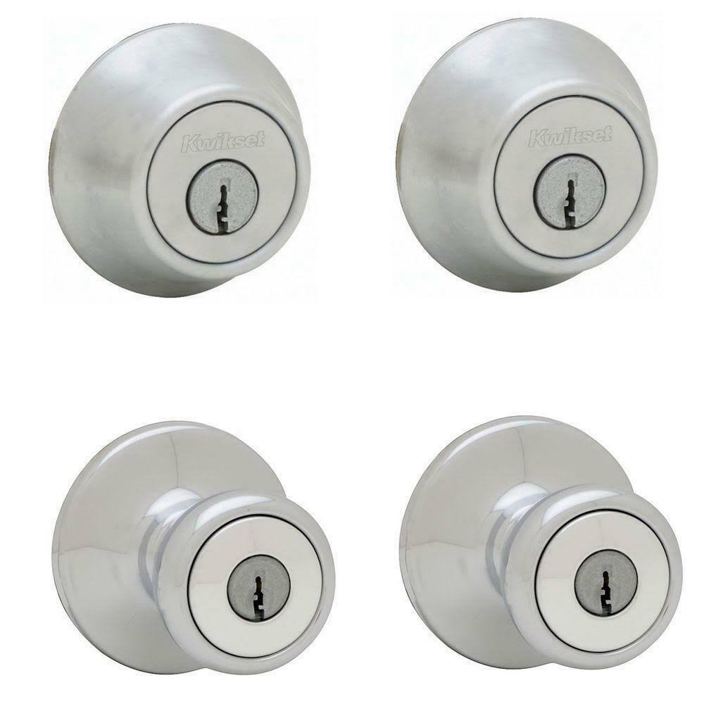 Tylo Satin Chrome Exterior Door Entry Knob and Single Cylinder Deadbolt Kwikset