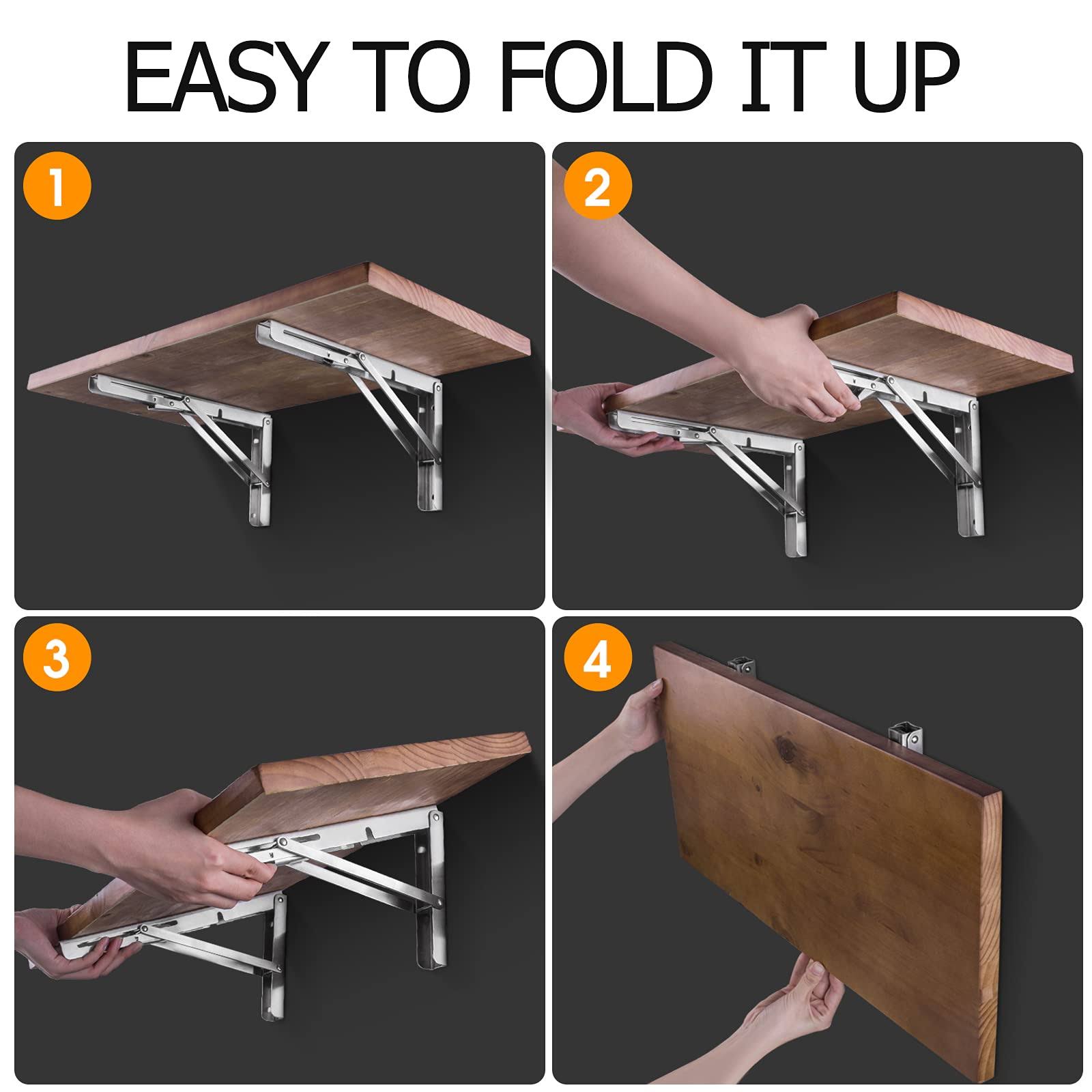 Folding Shelf Brackets 12 inch, Pynsseu Heavy Duty Stainless Steel Collapsible Wall Mounted Shelf Bracket for DIY Table Work Bench, Space Saving DIY
