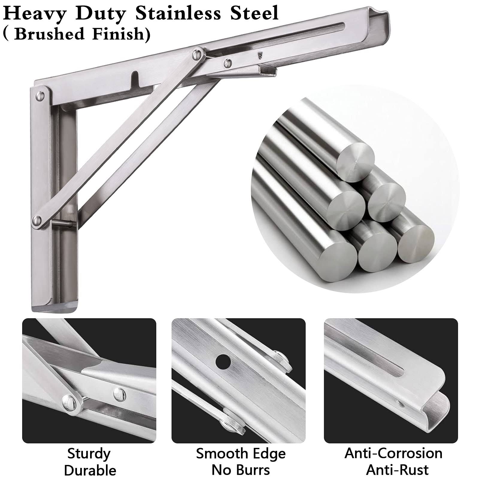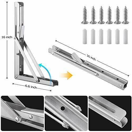 Folding Shelf Brackets 16 inch, Pynsseu Heavy Duty Stainless Steel Collapsible Wall Mounted Shelf Bracket for DIY Table Work Bench, Space Saving DIY
