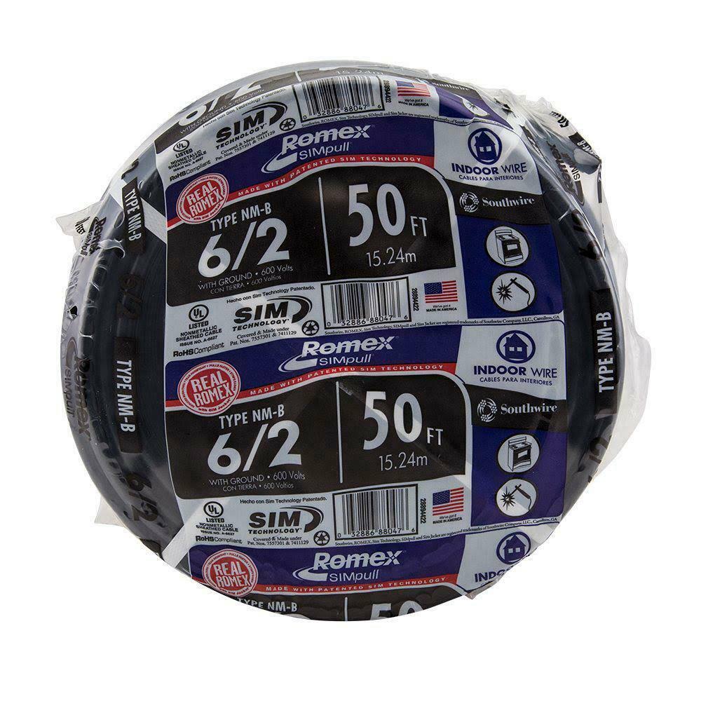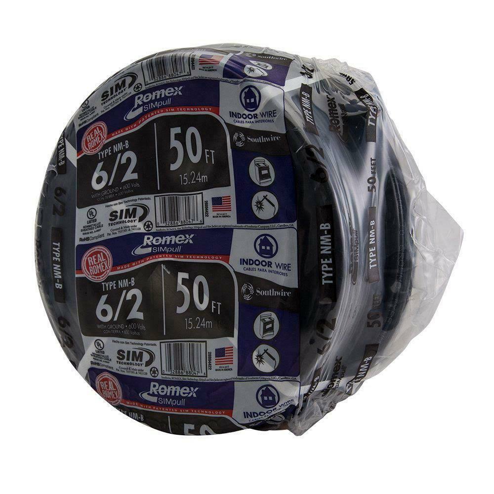 Southwire 50 ft. 6/2 Stranded Romex SIMpull Cu NM-B W/G Wire