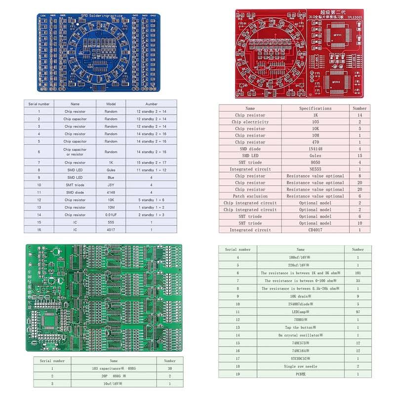 D DZRCOXI Soldering Practice Kit,3 Kits SMD SMT Weldering Skills Training Board(Soldering-All)