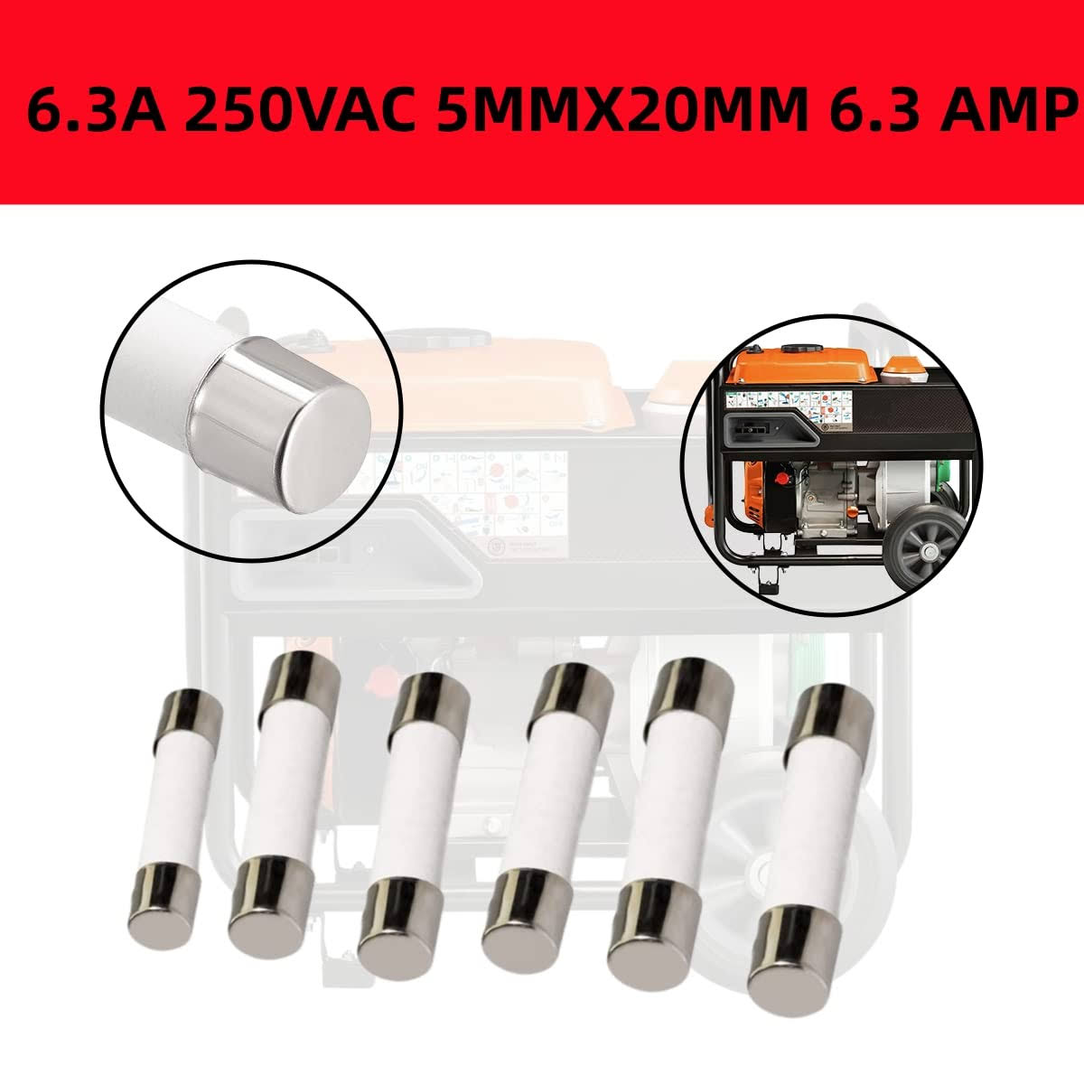 Rvanv Fuses Replacements for Generac replaces for 10000005117 6.3A 250VAC 5mmx20mm 6.3 Amp (6-pack)