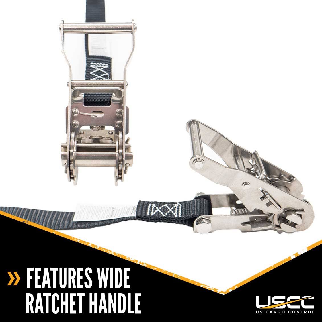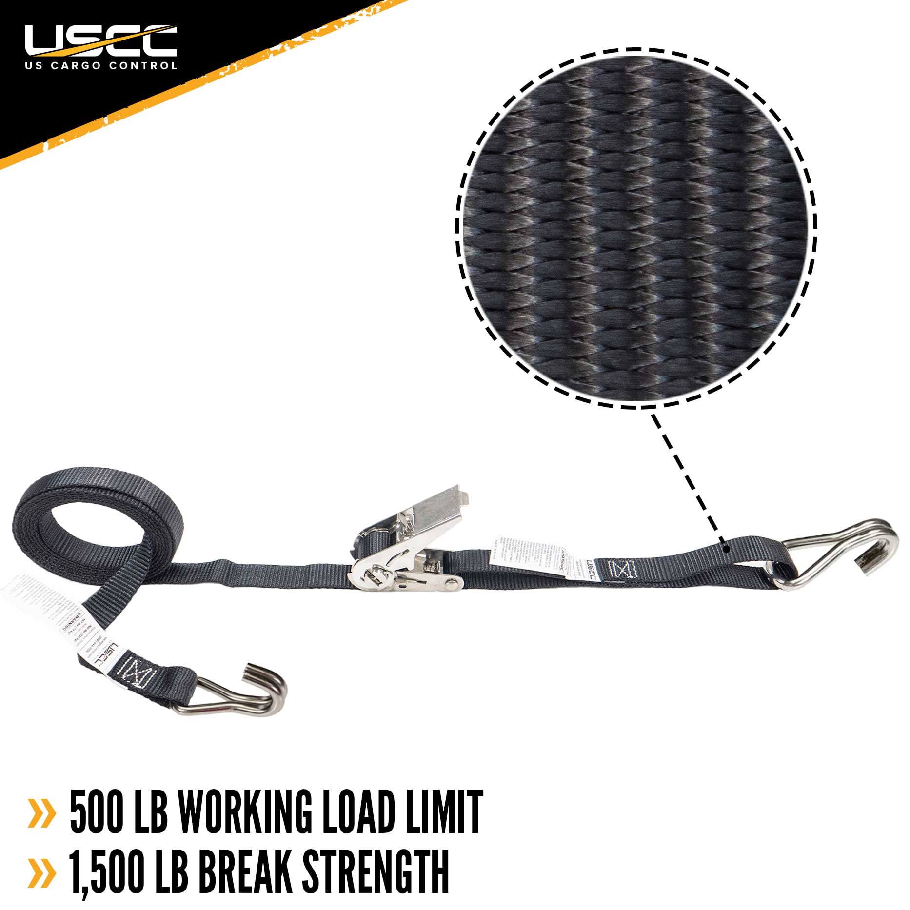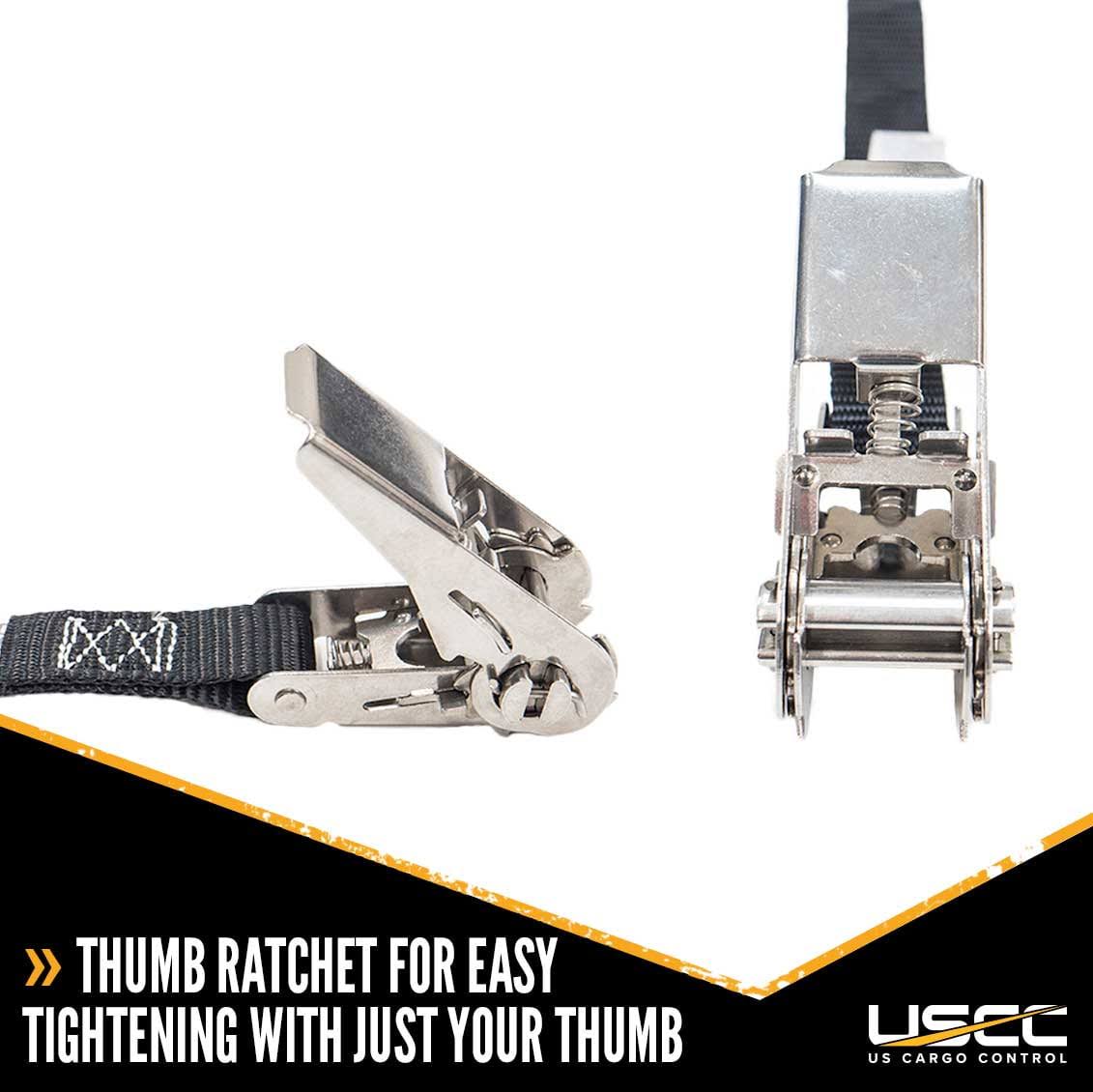 1" x 10' Black Stainless Steel Thumb Ratchet Strap w/ Wire Hooks