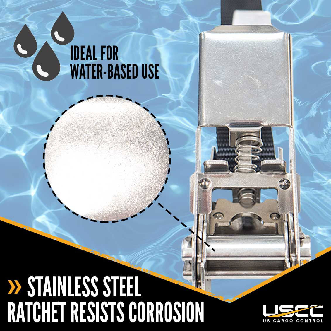 1" x 10' Black Ratchet Strap w/ Stainless Steel Ratchet & S-Hooks