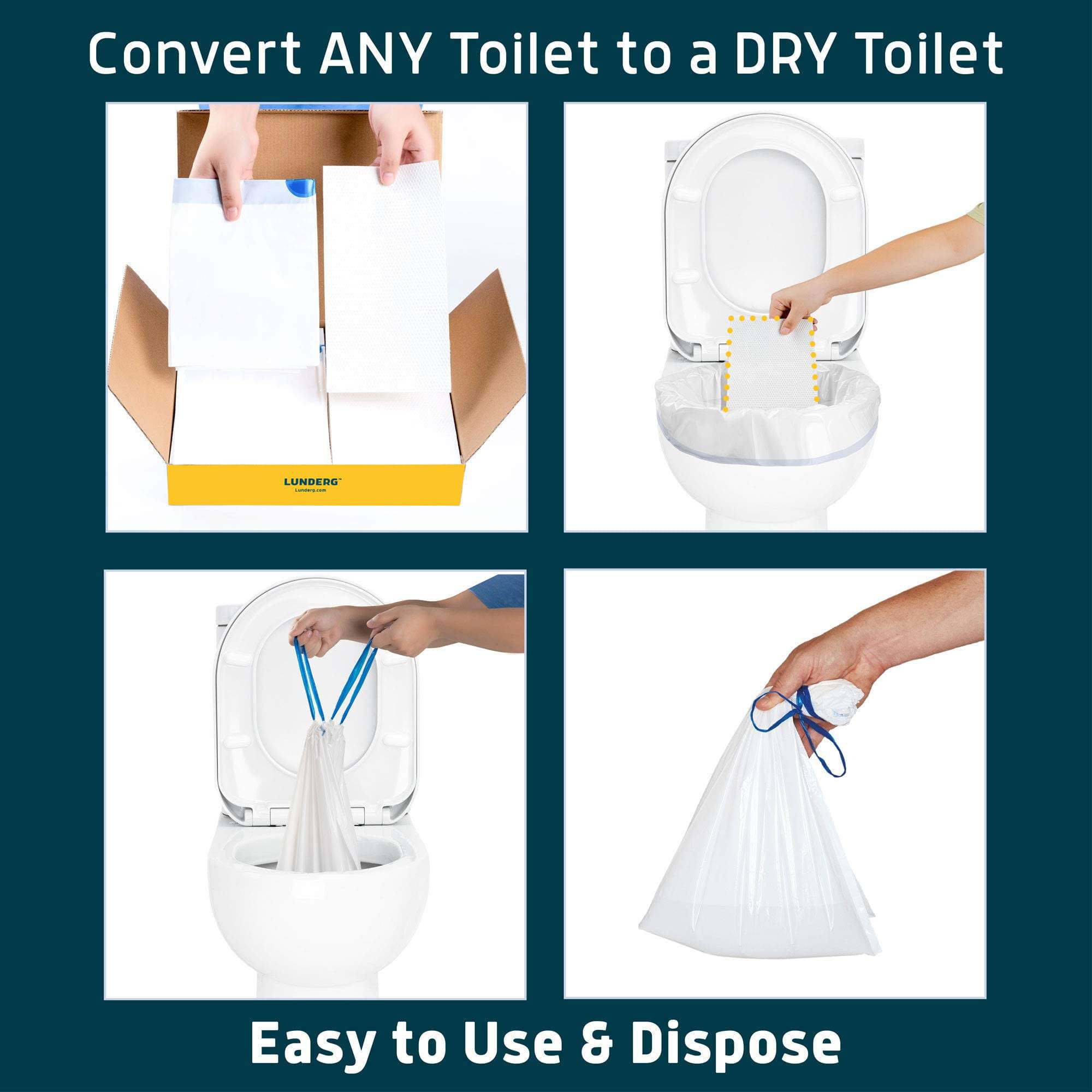 Lunderg Toilet Bowl Liners with Super Absorbent Pads- Value Pack 20 Count Universal Fit- Disposable Toilet Bags to Convert Any Home, Boat or
