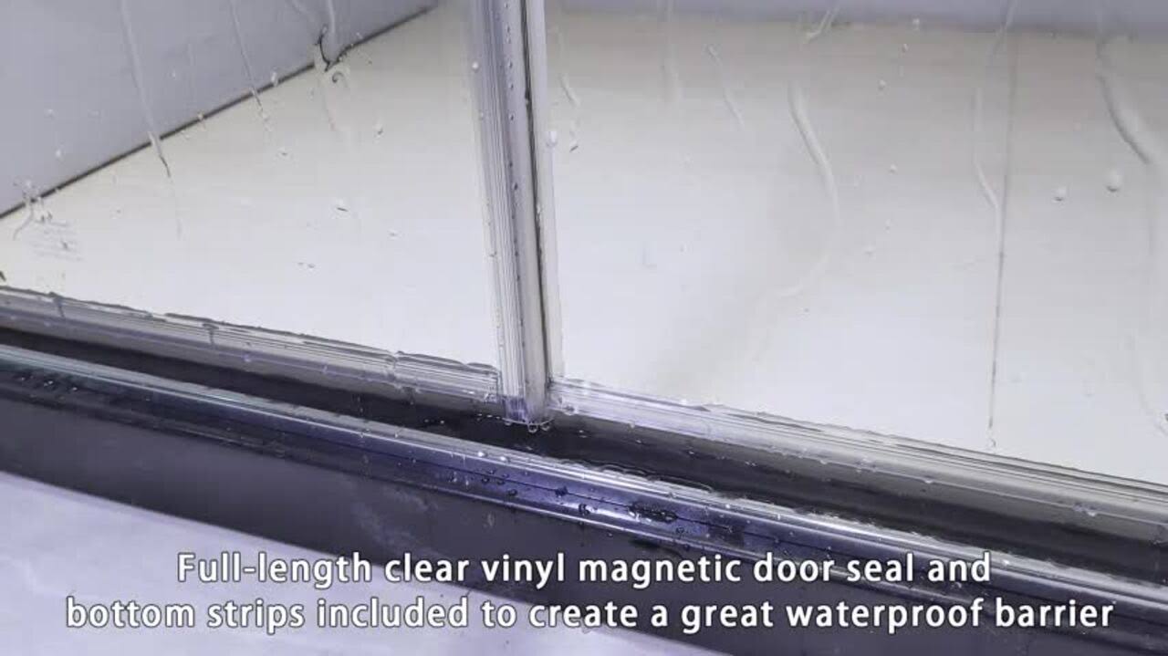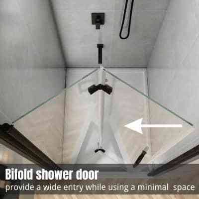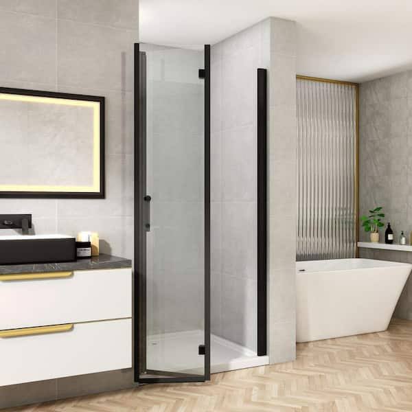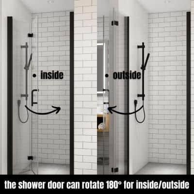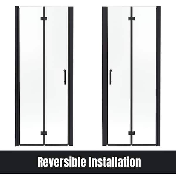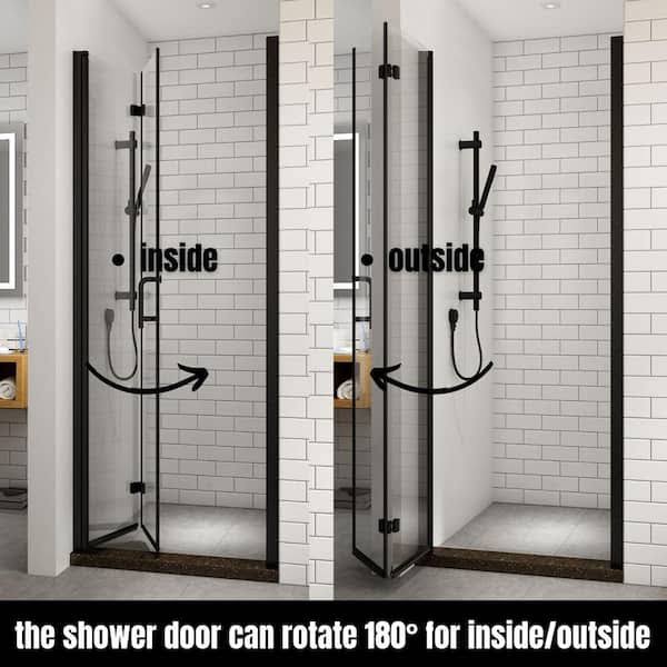 TOOLKISS 34 to 35-1/2 in. W x 72 in. H Bi-Fold Frameless Shower Doors in Black with Clear Glass BFH34MB