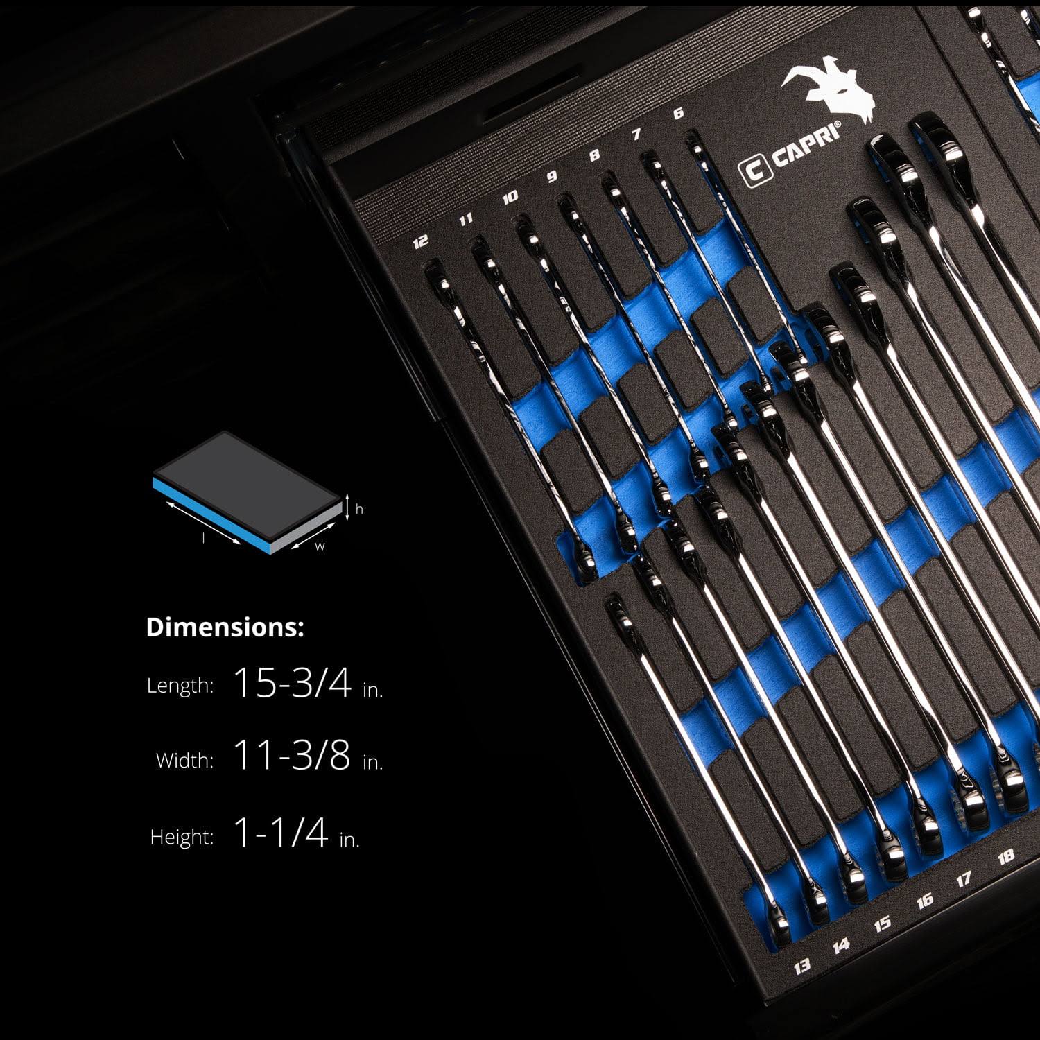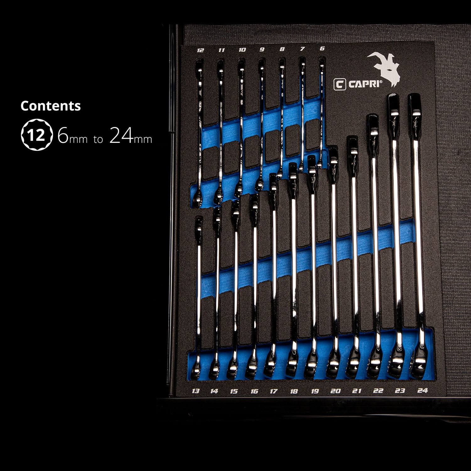 Capri Tools SmartKrome Combination Wrench Set with The Mechanic's Tray, Metric 6 to 24 mm, 19-Piece