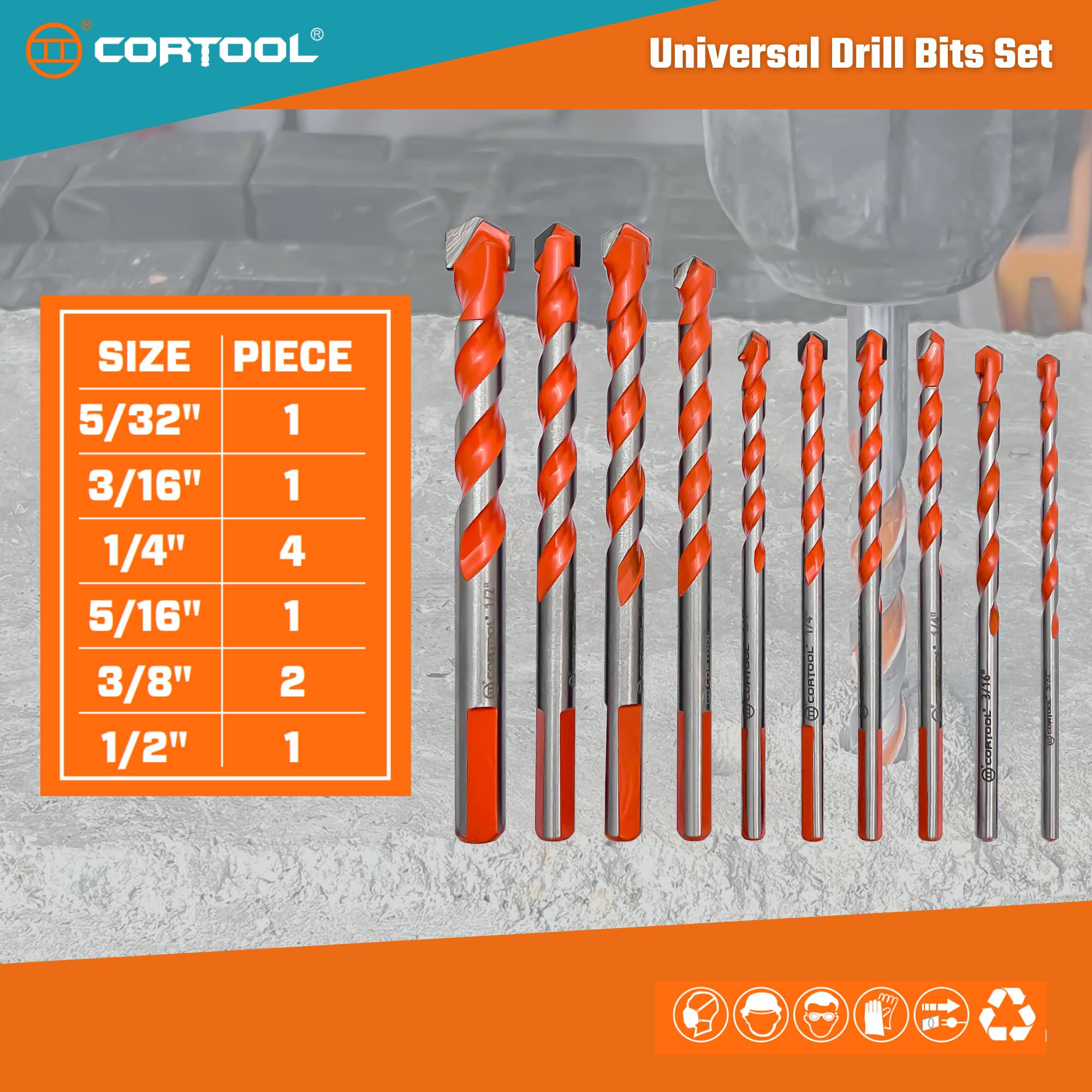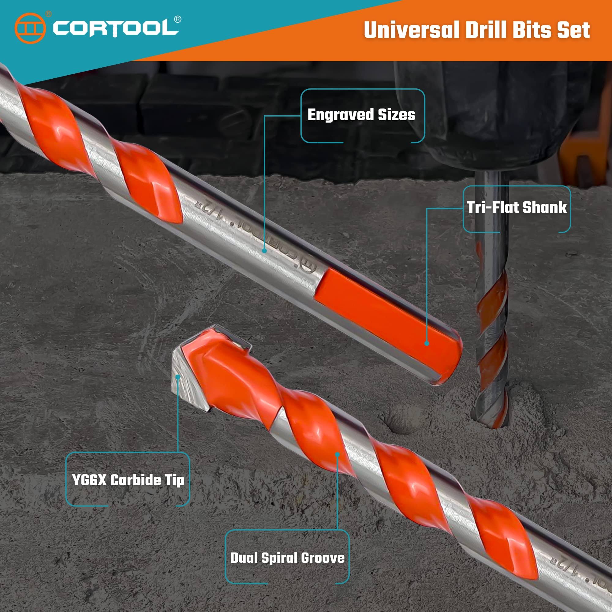 Masonry Drill Bits Set for Tile, Brick, Cement, Concrete, Glass, Plastic, Cinder Block, Wood, Fully Ground with Carbide Tips and Storage Case 25200010