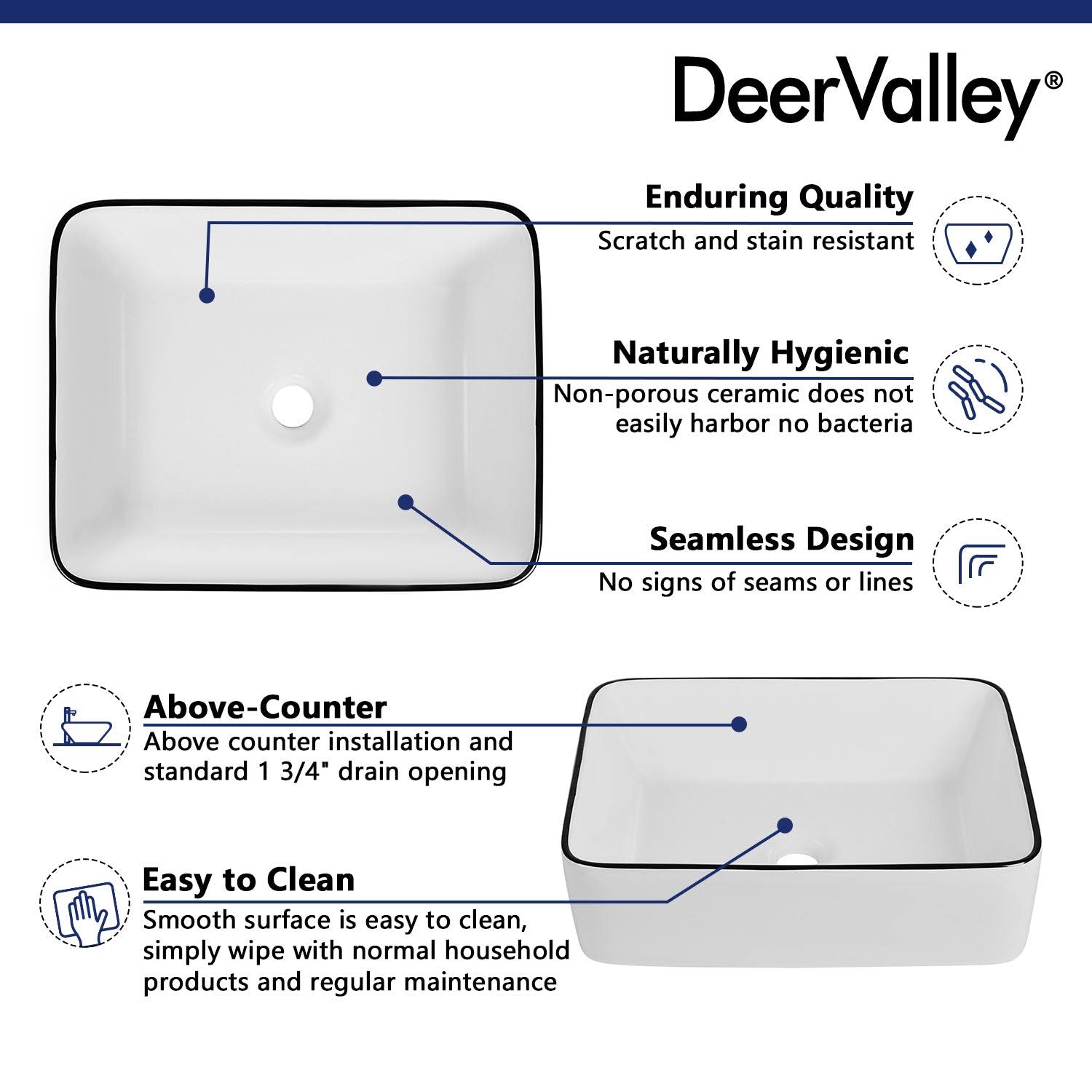 DeerValley DV-1V0002 Ally Black and White Ceramic Rectangular Vessel Bathroom Sink