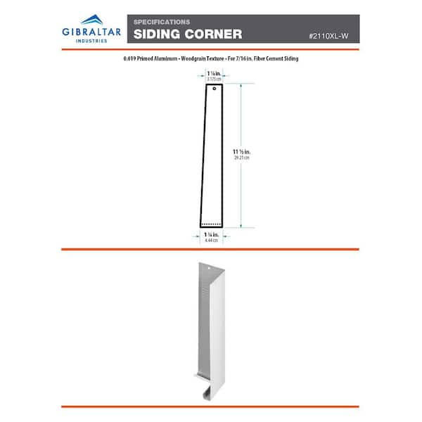 Gibraltar Building Products 11.5 in. x 4.5 in. x 0.9 ft. Woodgrain Aluminum Primed XL Siding Corner MOULDING, Woodgrain Finish