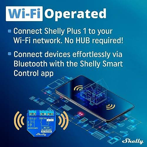 Shelly Plus 1 Relay Switch, WiFi Smart Home Automation, Compatible with Alexa & Google Home, iOS Android App, No Hub Required, Wireless Switch, DIY
