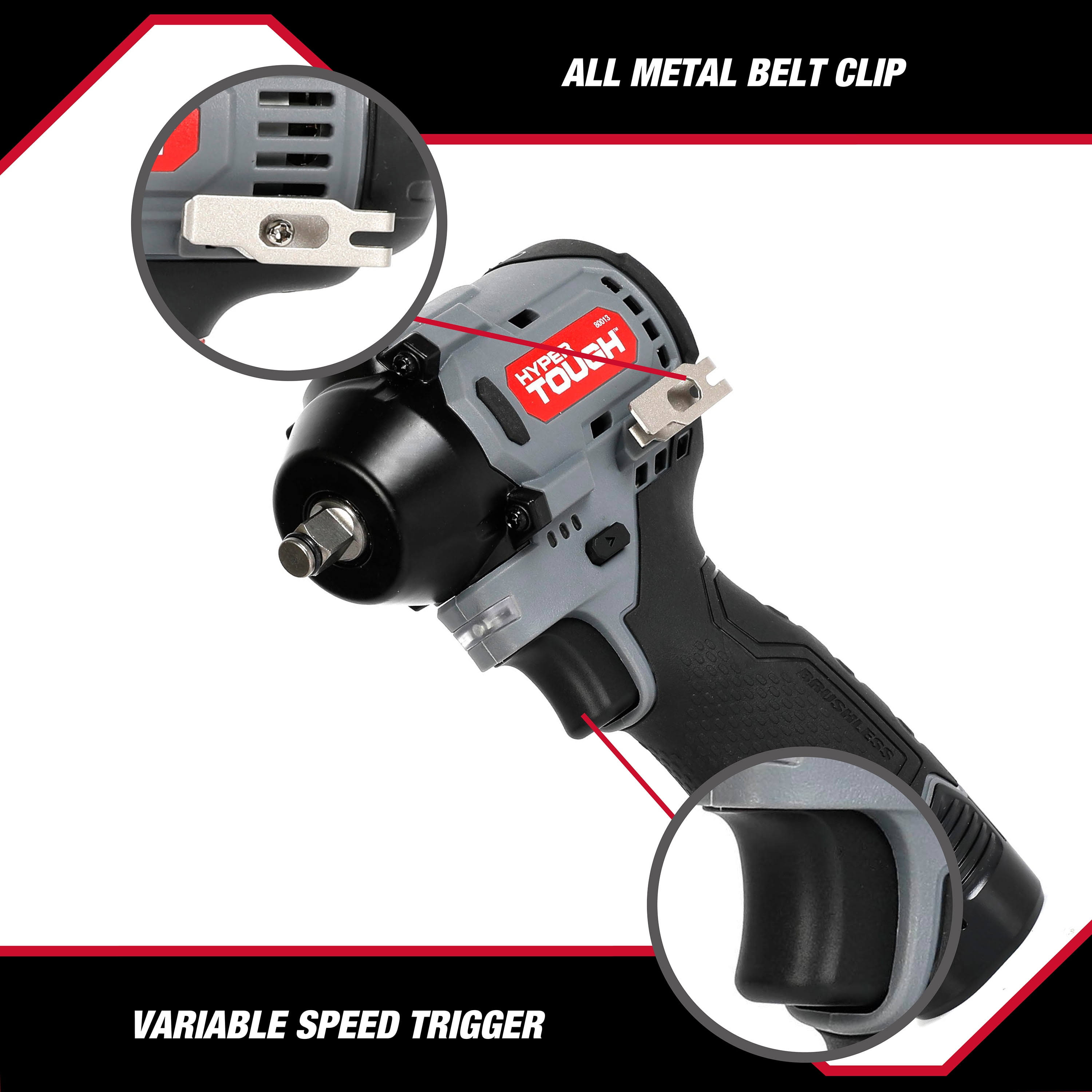 Hyper Tough 80013 12V Max Lithium-Ion Brushless Impact Wrench with 2.0Ah Battery and Charger