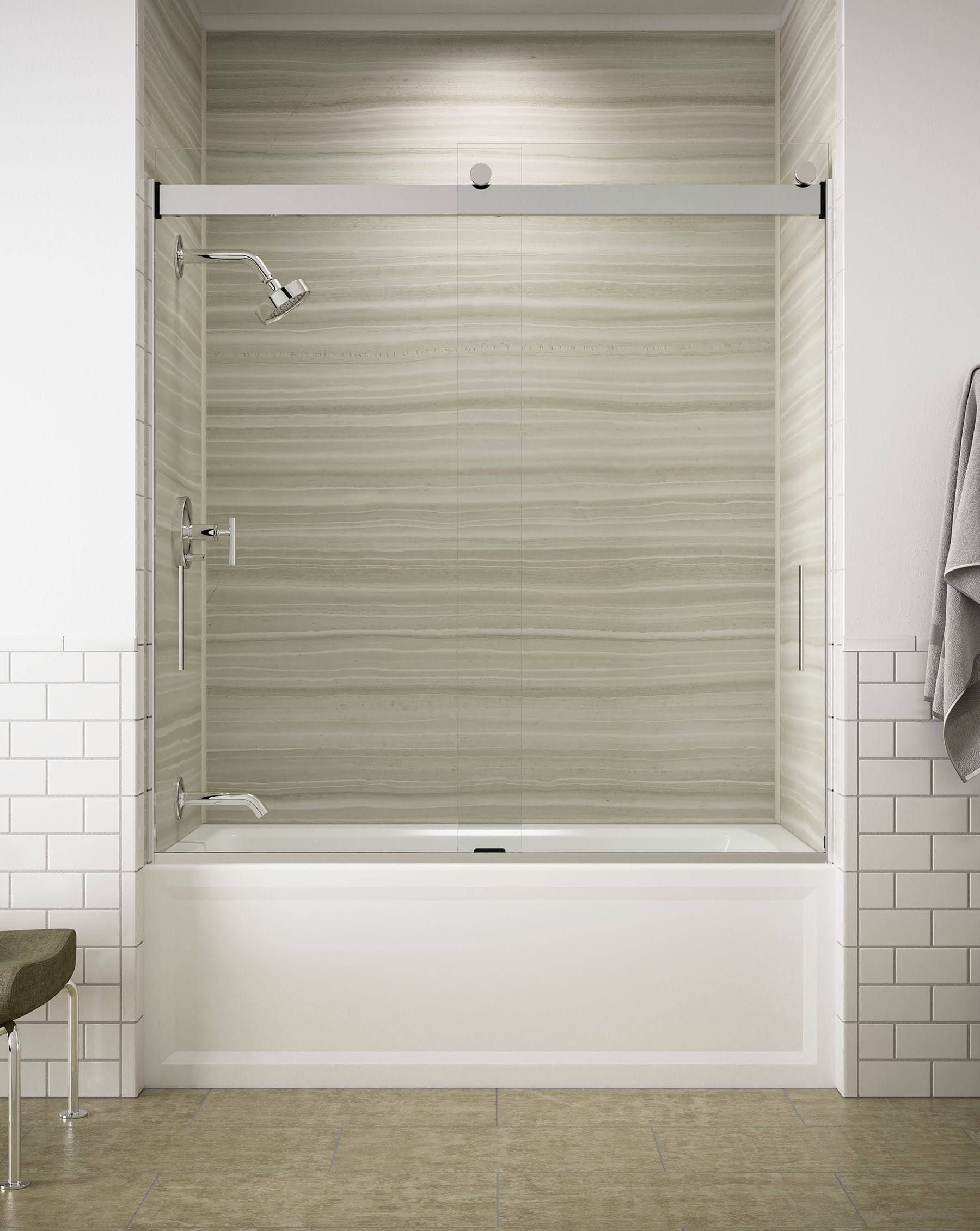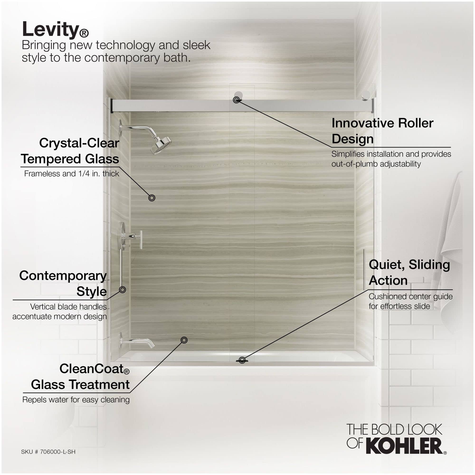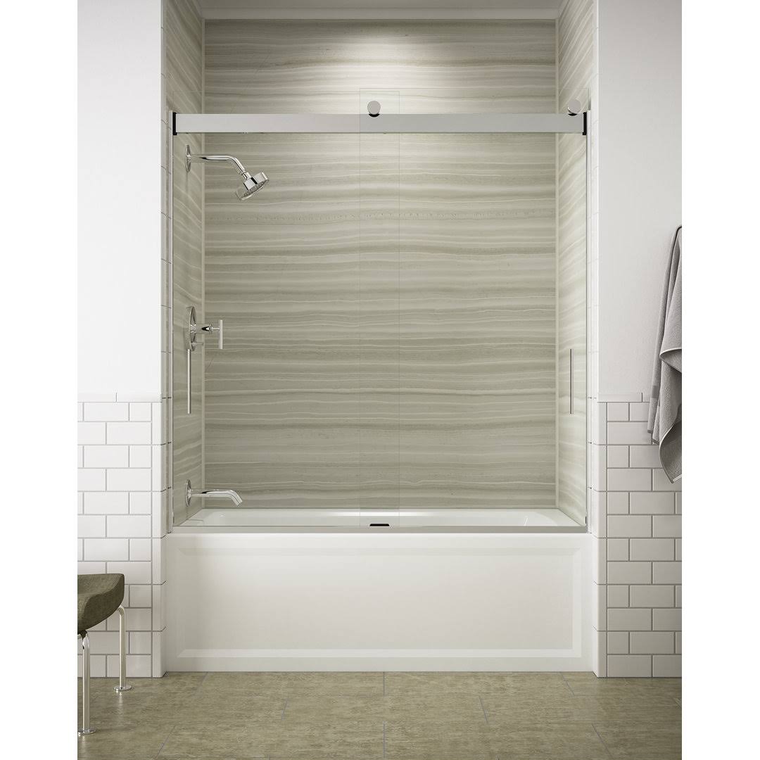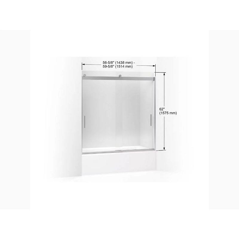 Kohler K-706000-L-SH Bright Silver Levity 62" H Sliding Bath Door with 1/4"- Thick Glass