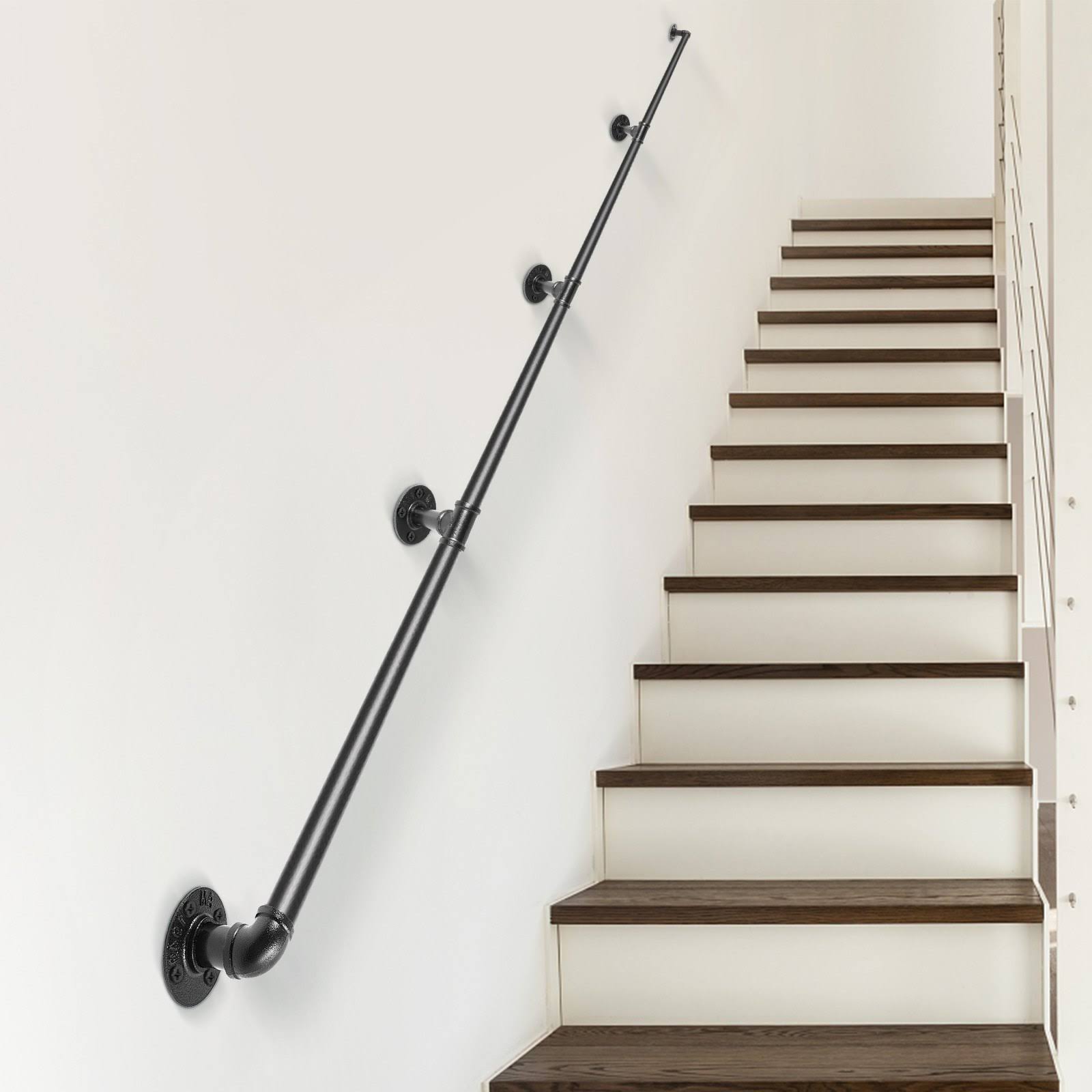 VEVOR Pipe Stair Handrail, 13ft Staircase Handrail, 440lbs Load Capacity Carbon Steel Pipe Handrail, Industrial Pipe Handrail with Wall Mount