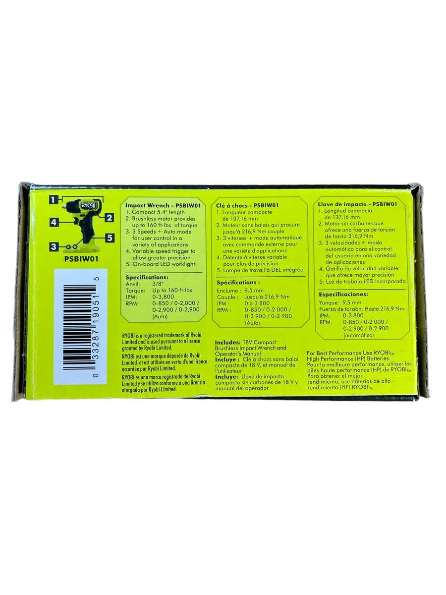 *RYOBI One+ HP 18V Brushless Cordless Compact 3/8 in. Impact Wrench (Tool Only)