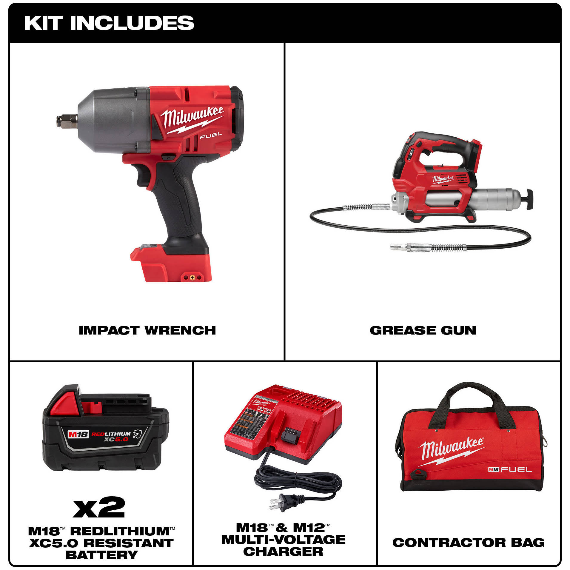 Milwaukee M18 Fuel High Torque Impact Wrench with Grease Gun Kit 2767-22GR