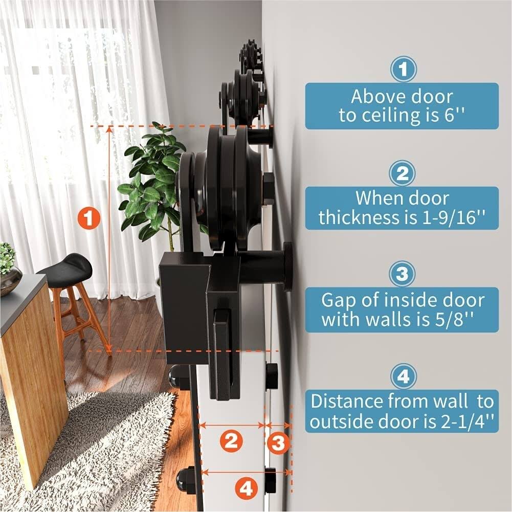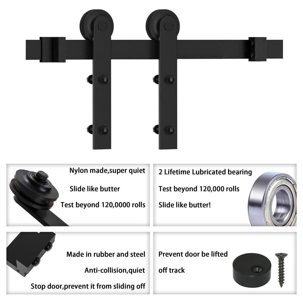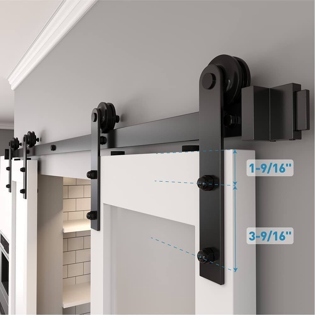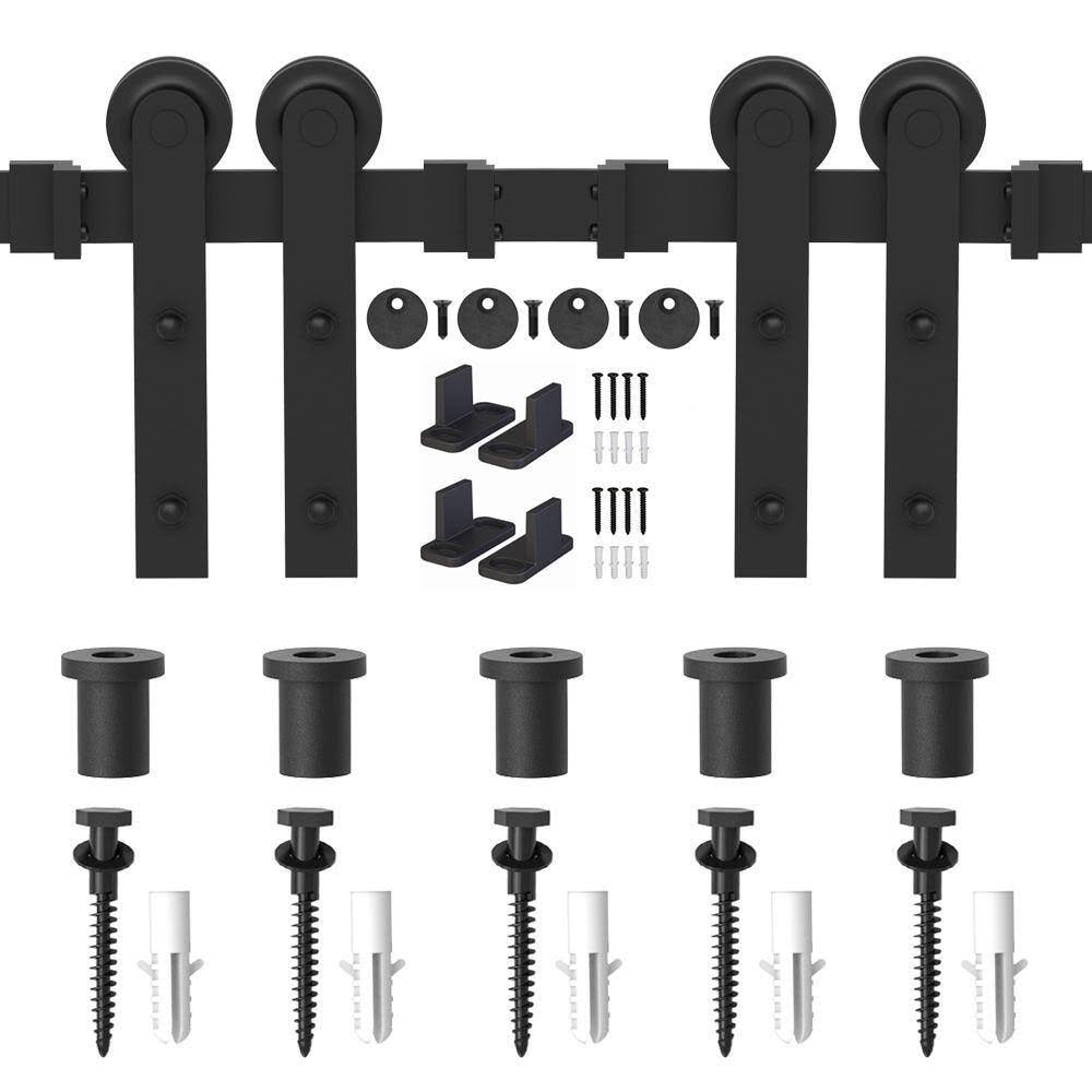 Winsoon 4-14 ft Sliding Barn Door Hardware Track Kit for Double Doors I Style Rollers- 6ft