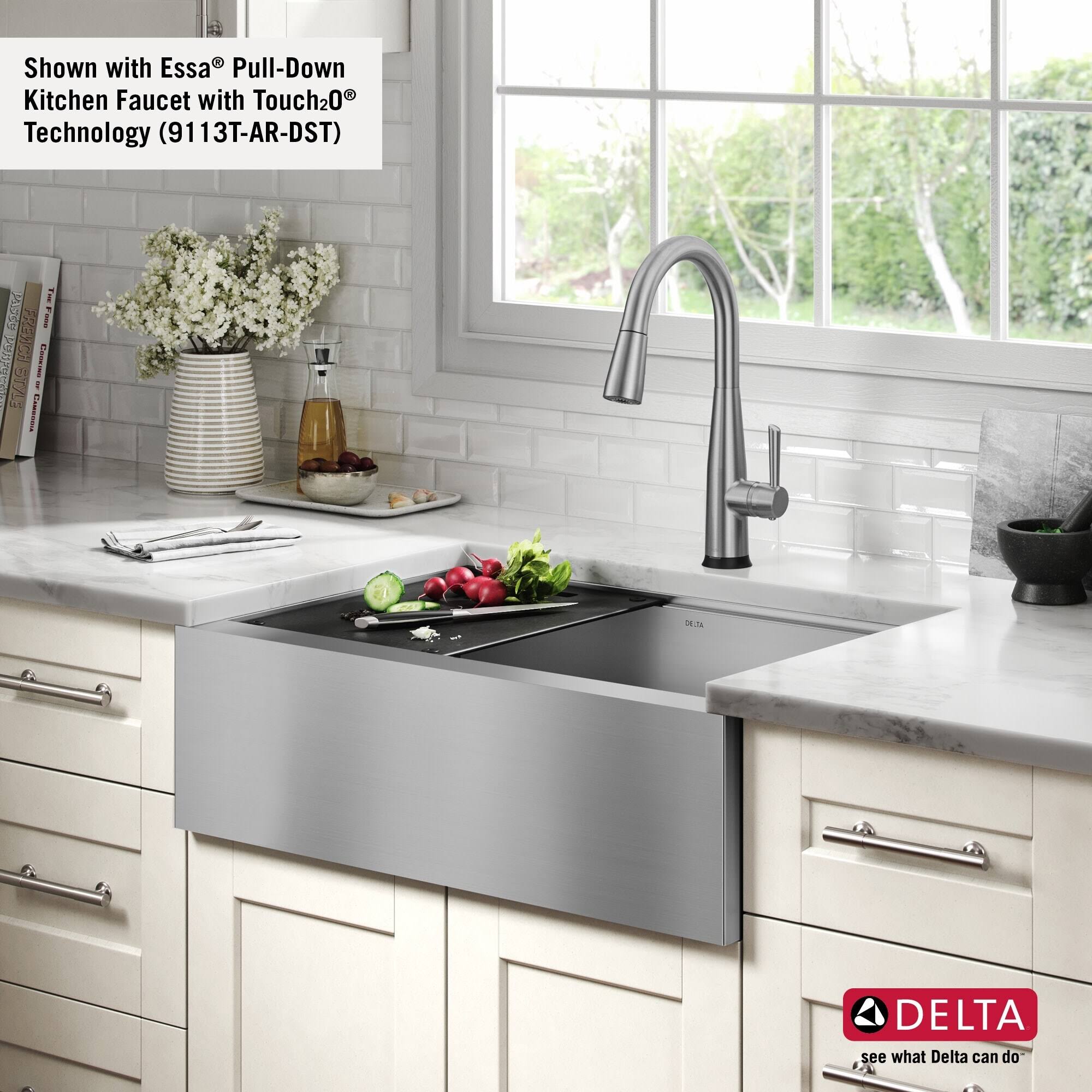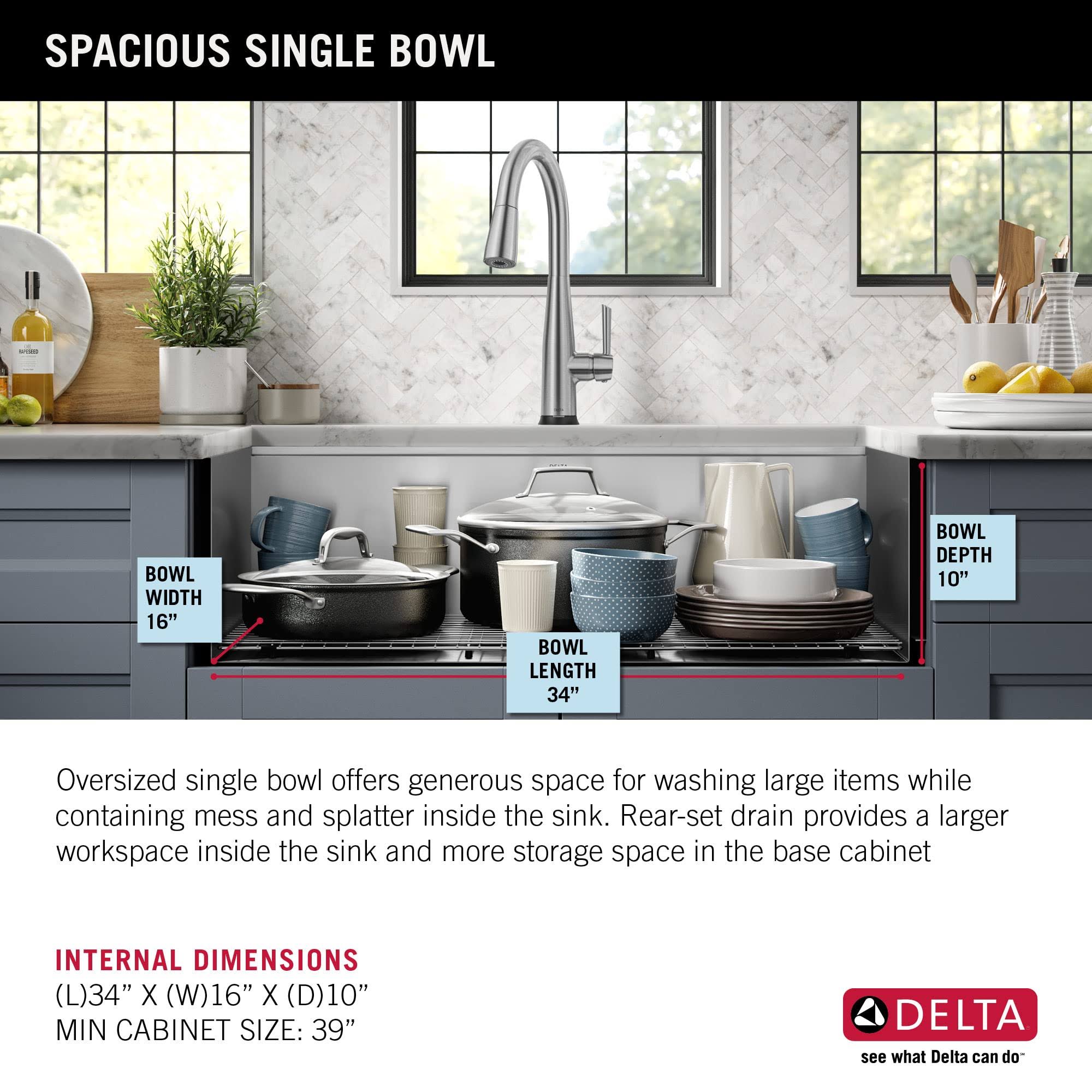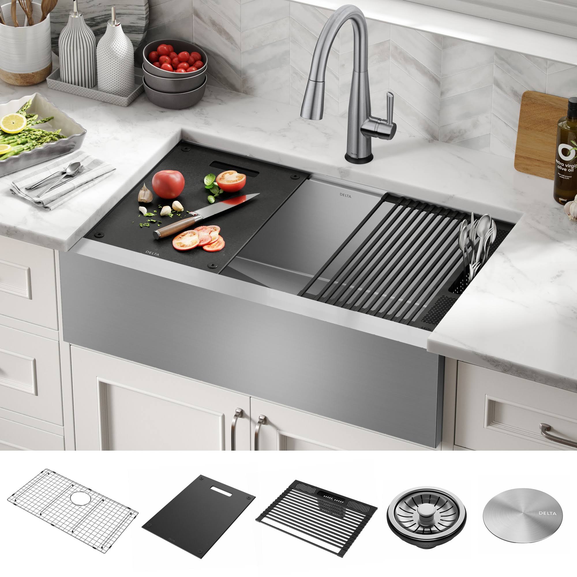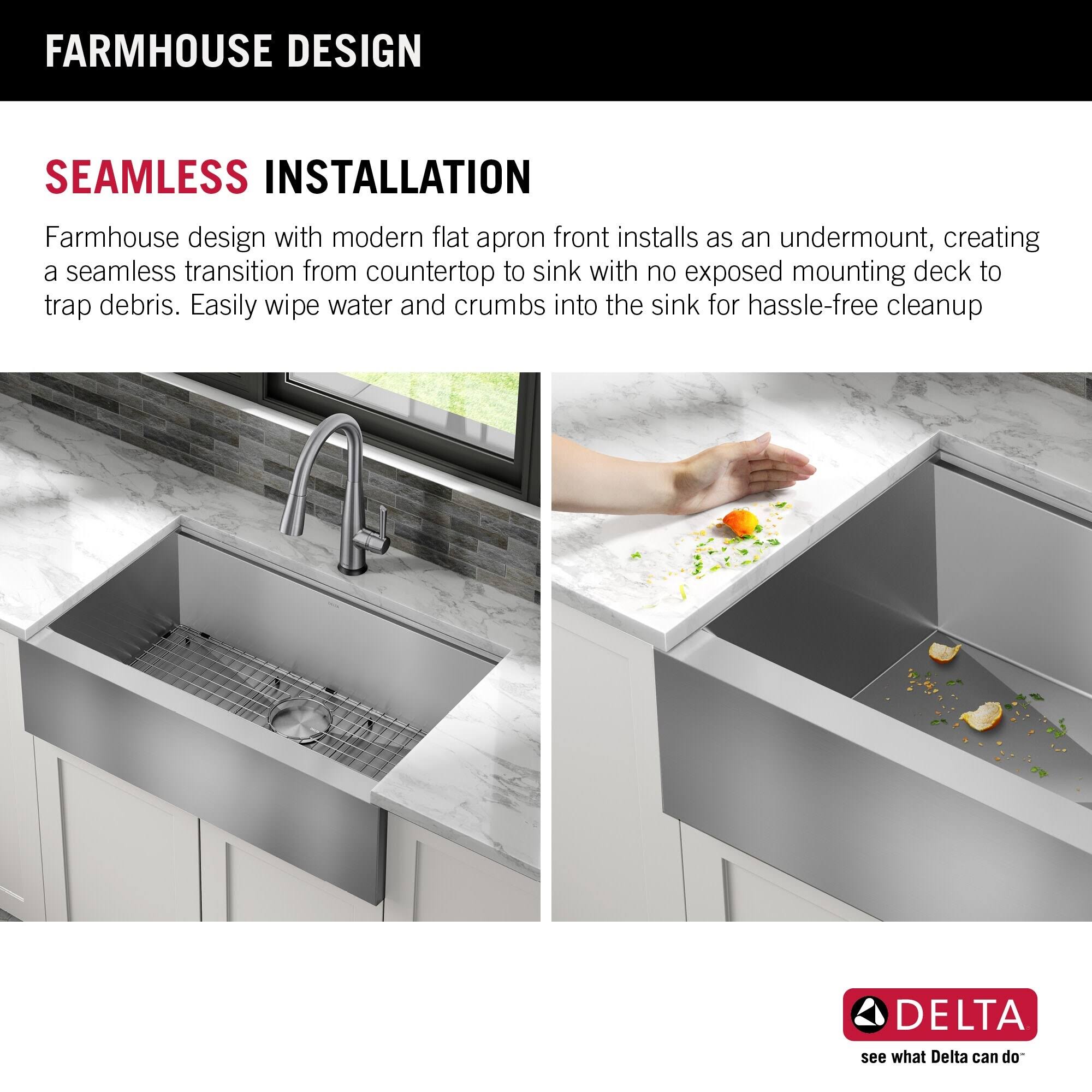 Delta 95C9031-33S-SS Rivet 33" L Workstation Farmhouse Apron Front Kitchen Sink Undermount 16 Gauge Stainless Steel Single Bowl