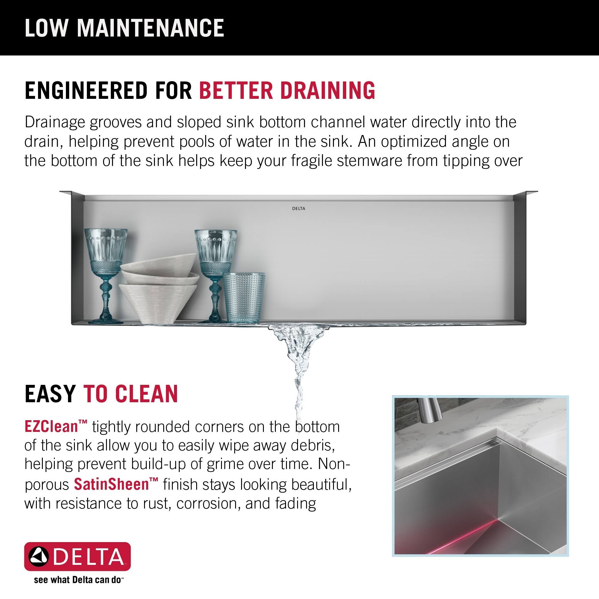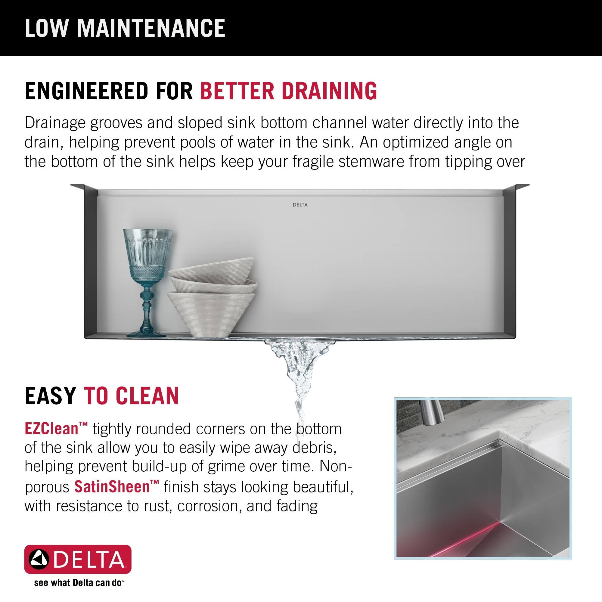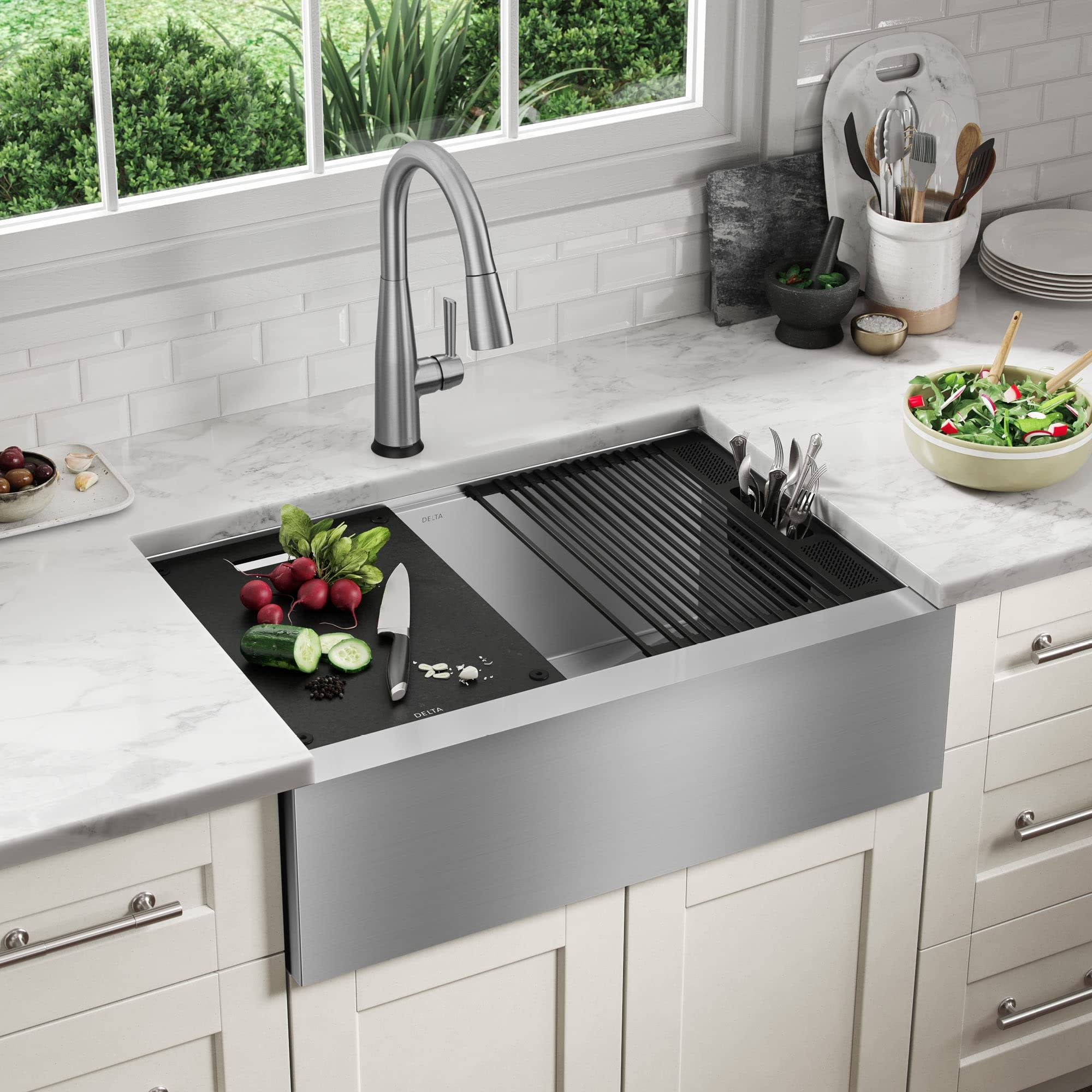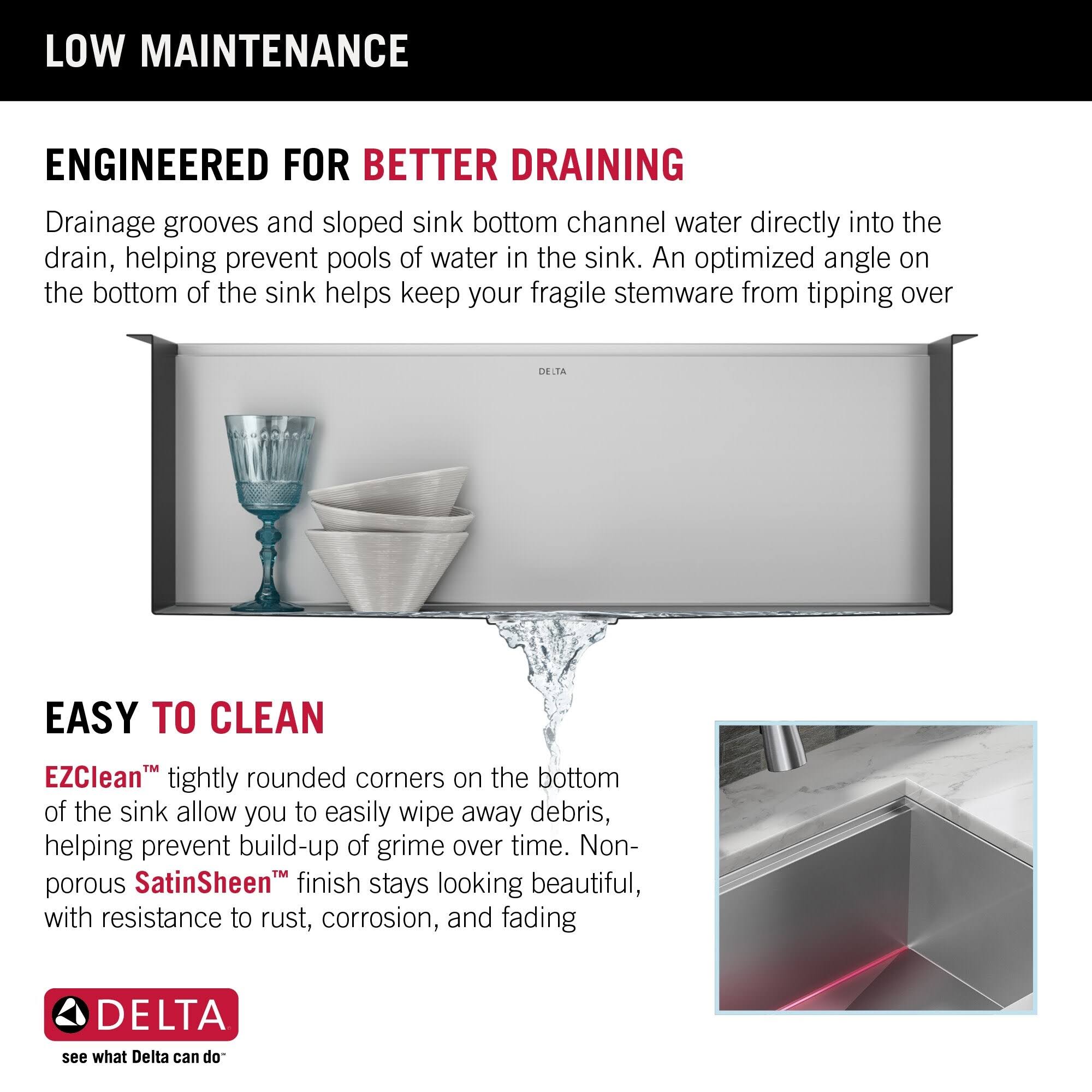 Delta 95C9031-33S-SS Rivet 33" L Workstation Farmhouse Apron Front Kitchen Sink Undermount 16 Gauge Stainless Steel Single Bowl