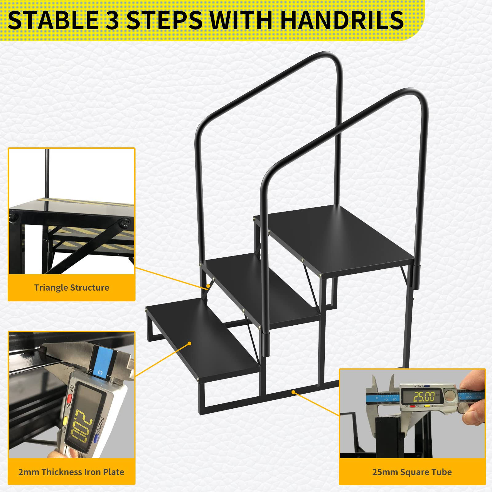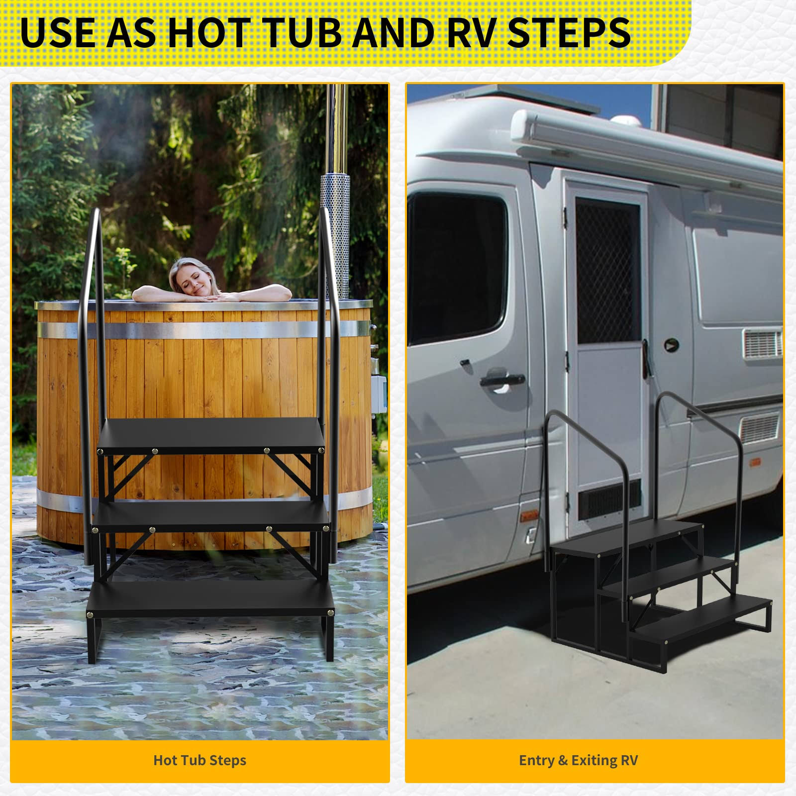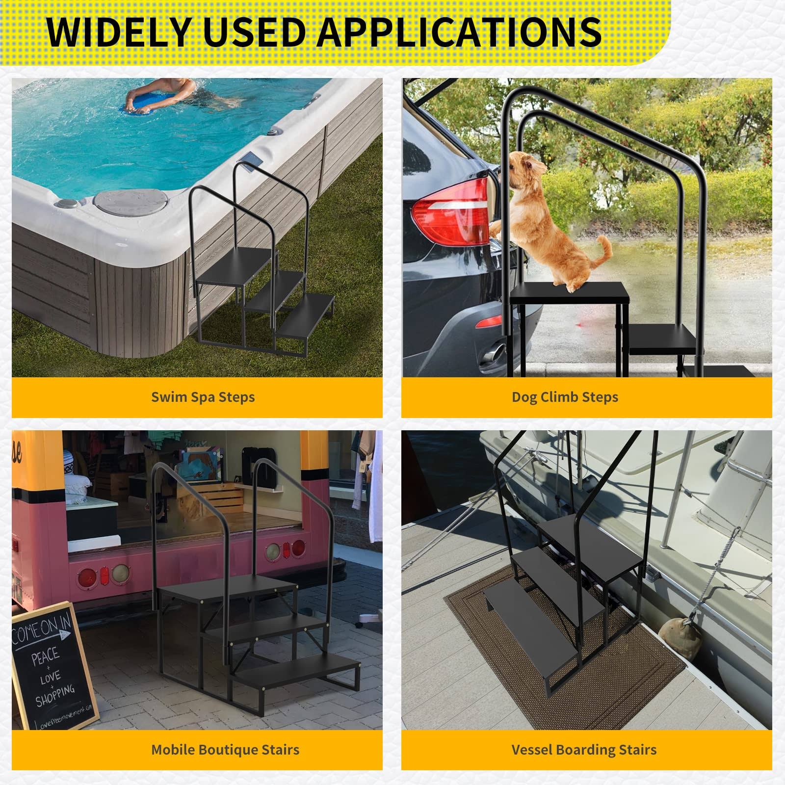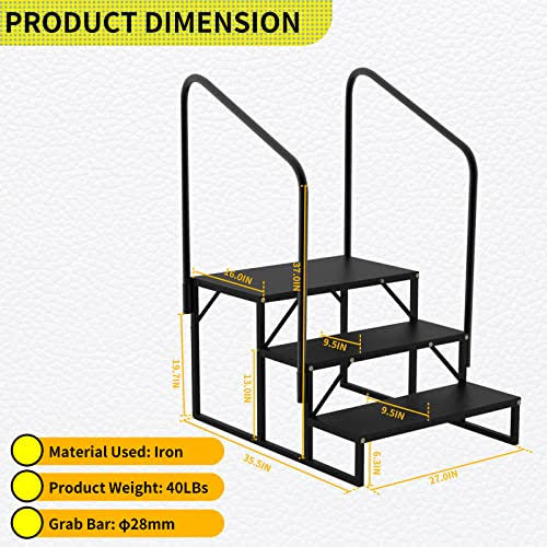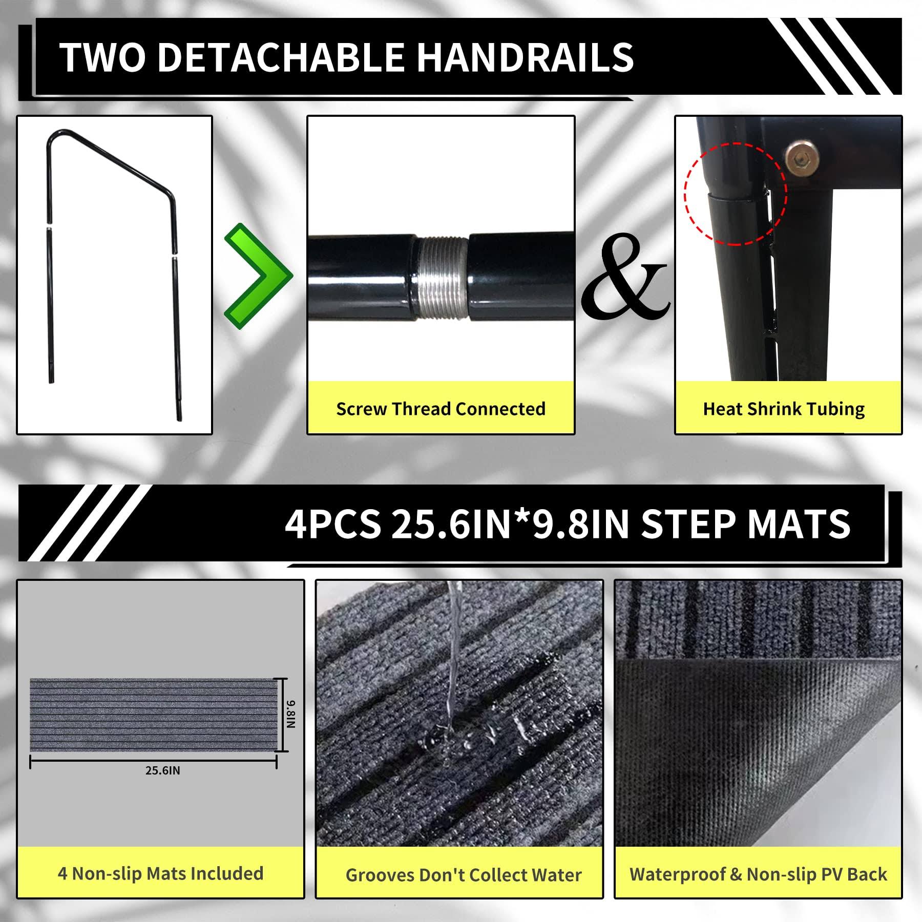 Coocure RV Steps with Handrail Mobile Home Stairs Outdoor Hot Tub Handrail Portable for 5th Wheel RV Travel Trailer Motor Home Camper and Porch Non-Sk