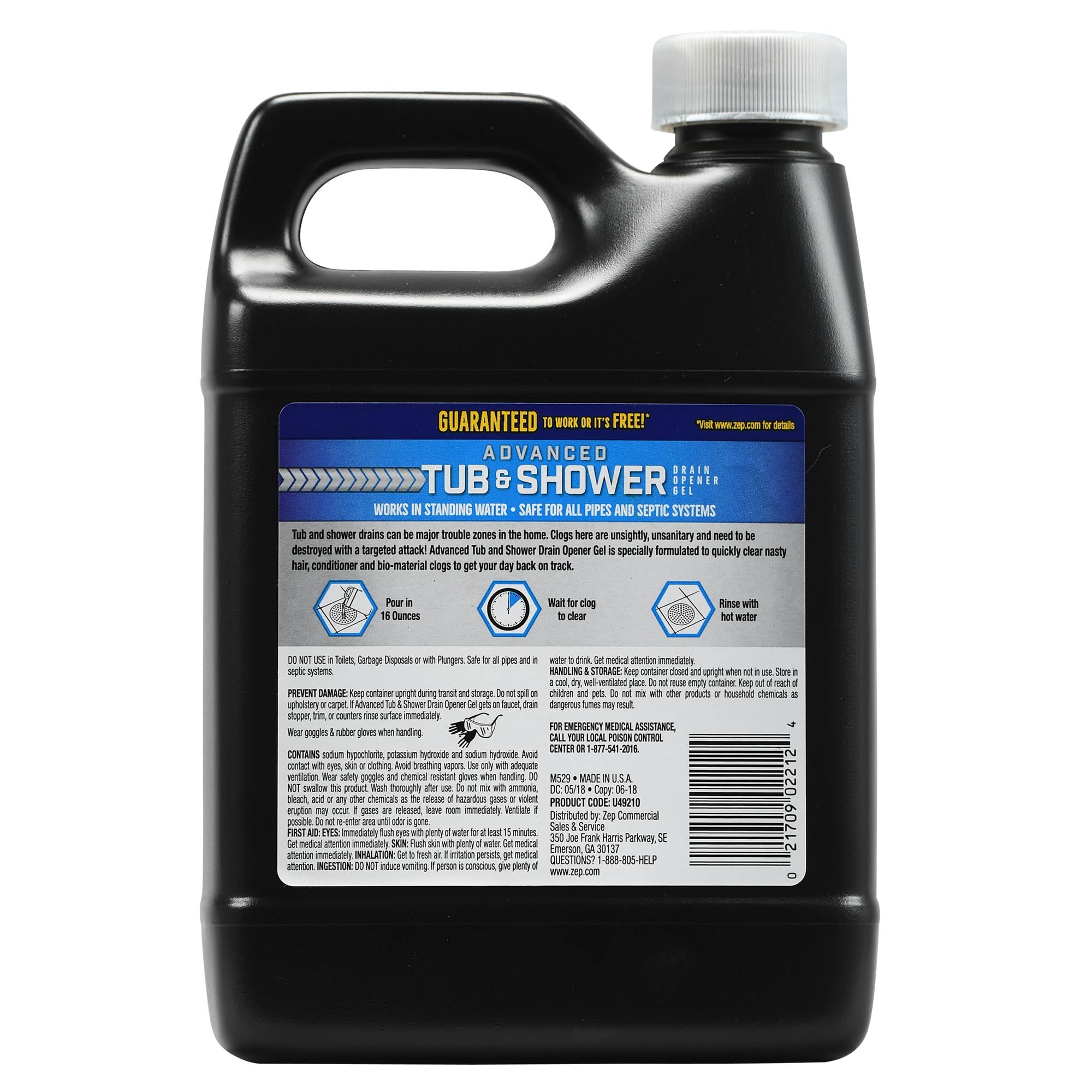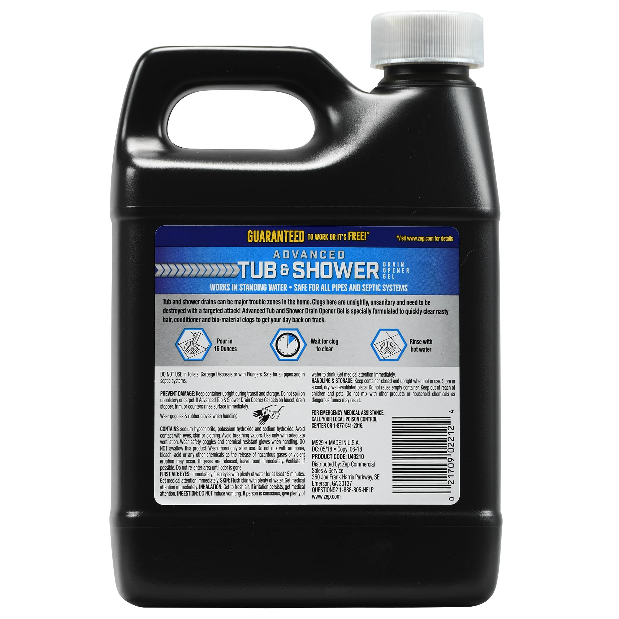 Zep Advanced Tub and Shower Drain Opener Gel 32 Ounce U49210 (Case of 12)
