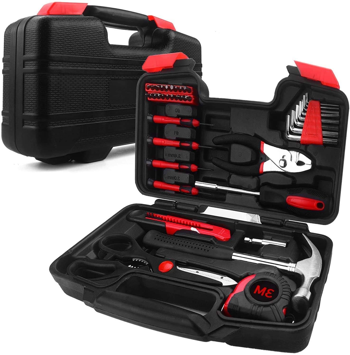 Rvogjp 39-Piece Household Tools Kit- Small Basic Home Tool Set with Plastic Toolbox- Great for College Students, Household Use & More