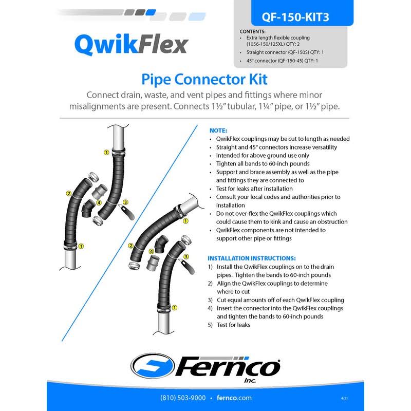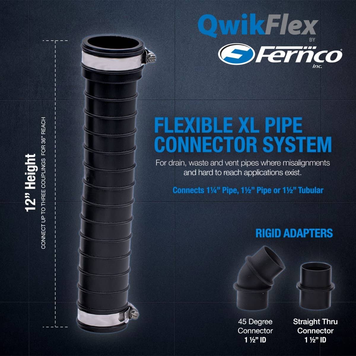 Fernco QwikFlex 24" Flexible Pipe Connector Kit for Offset or Hard to Reach 1-1/4 and 1-1/2" DWV Connections