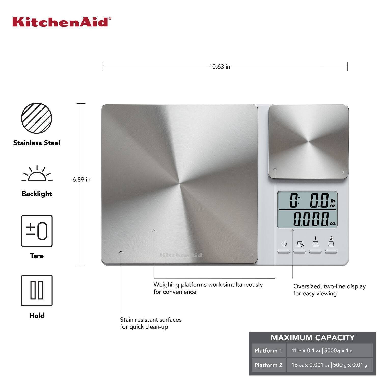 KitchenAid 11lb Dual Platform Kitchen Digital Food Scale Silver