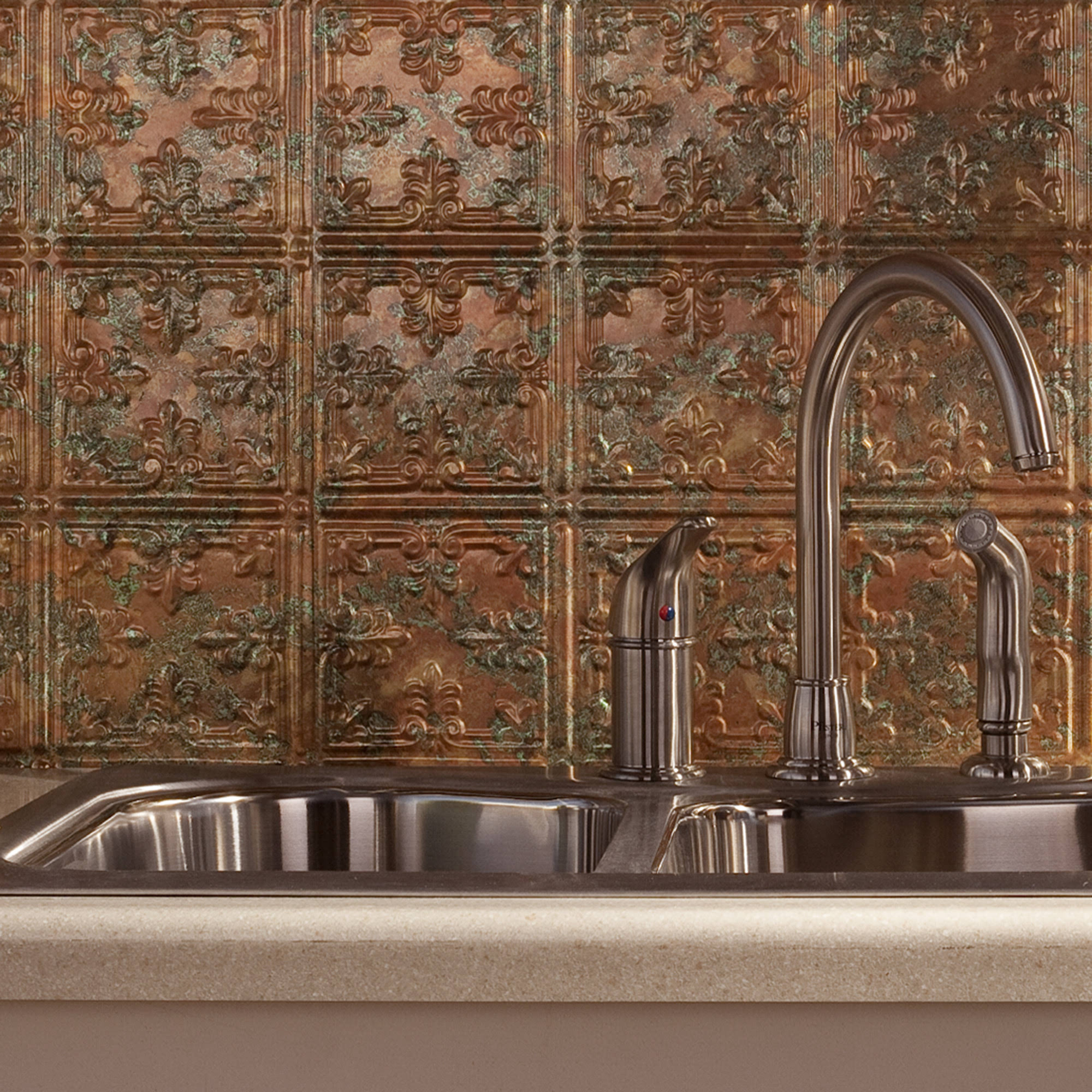 Fasade Traditional Style/Pattern 10 Decorative Vinyl 18in x 24in Backsplash Panel in Copper Fantasy (5 Pack)